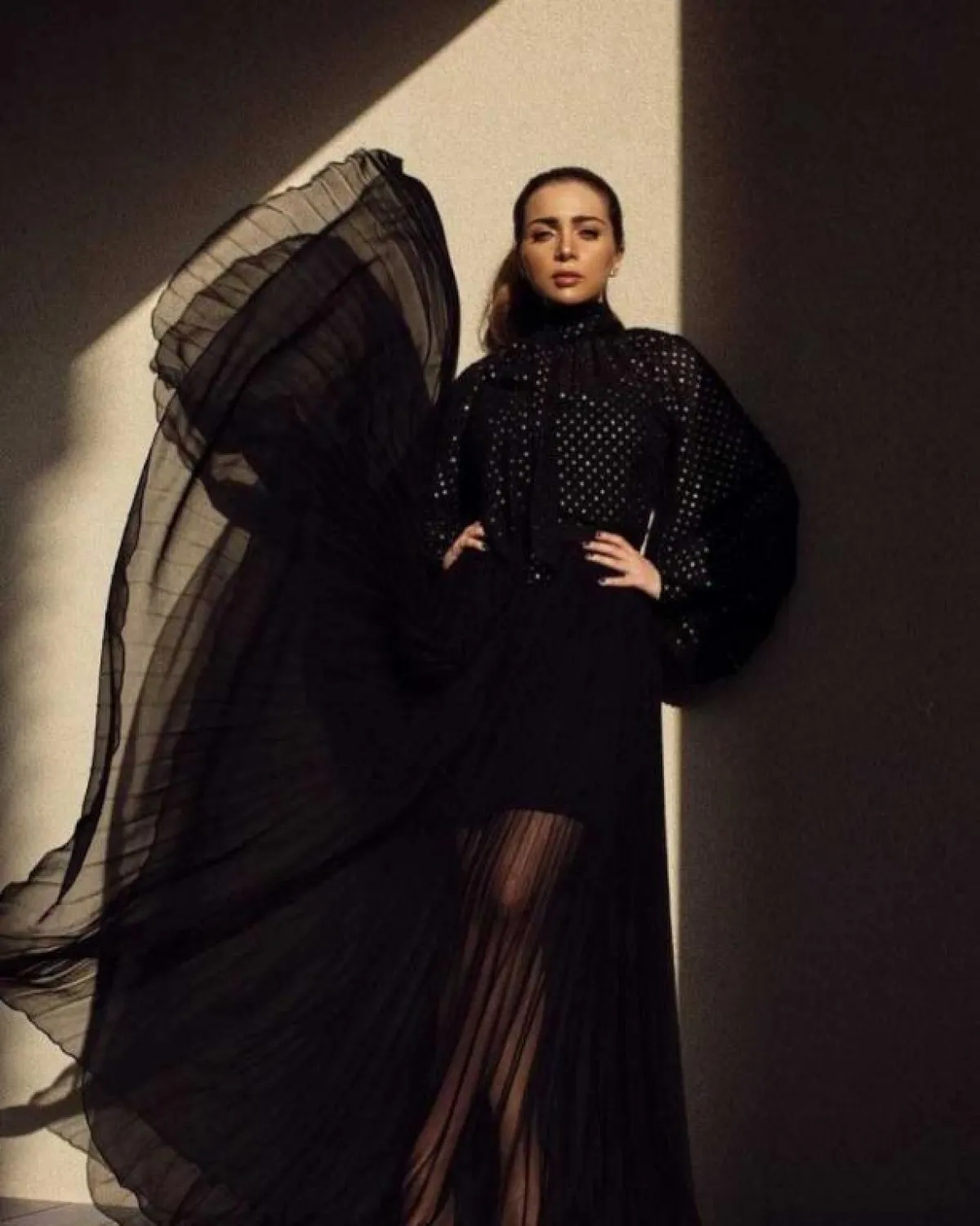 وقد اختارت مي في اطلالتها الاحتفالية اللون الأسود لفستانها، ما دفع البعض للتعبير عن عدم مناسبة الاختيار لهذا الحدث السعيد.