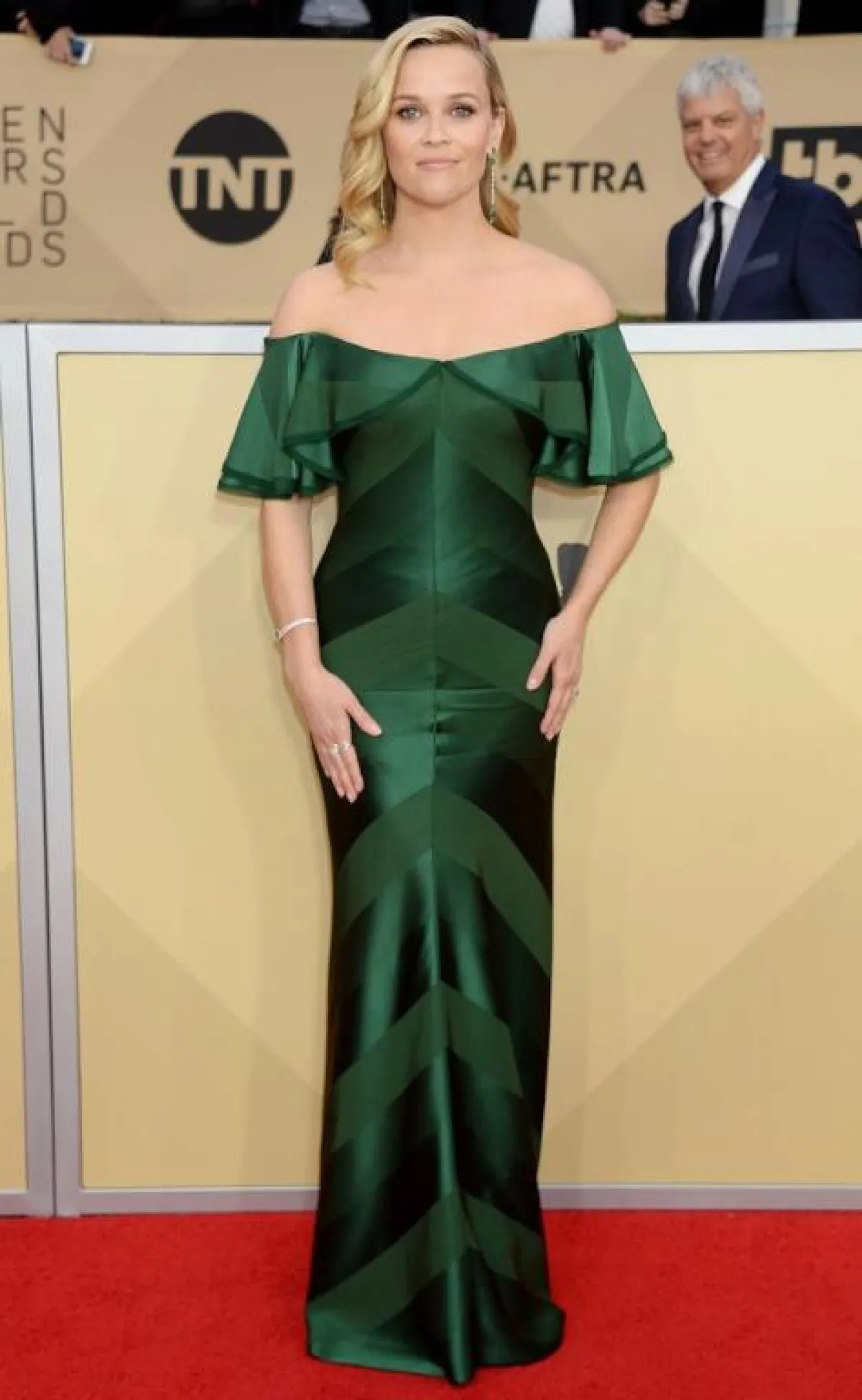 كما تألقت النجمة ريز ويذرسبون Reese Witherspoon بفستانها الأخضر المموّج من توقيع زاك بوزن Zac Posen وكان خيارها موفّقاً جداً خاصة مع تسريحة الشعر التي اعتمدتها.