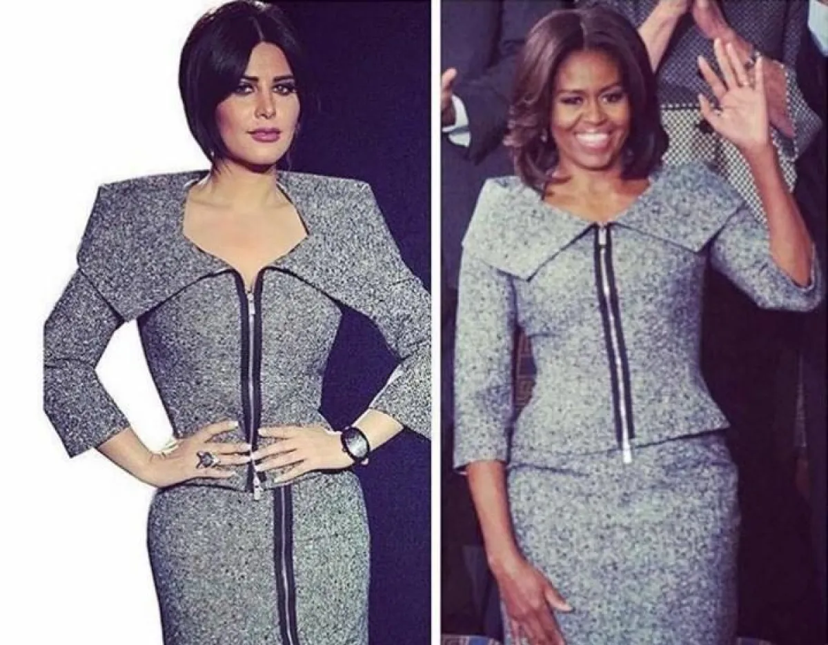 أما اطلالة أوباما وشمس فتميزت بـ"التايور" الرمادي اللون، والقماش السميك التصميم، كما صُمّم الصدر والأكتاف بطريقة ملوكية زادت من جمال وأناقة اطلالة النجمتين، وأبرزت خصرهما أكثر أنوثة.