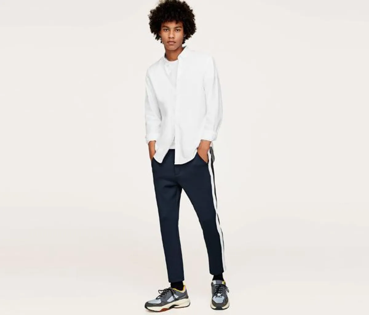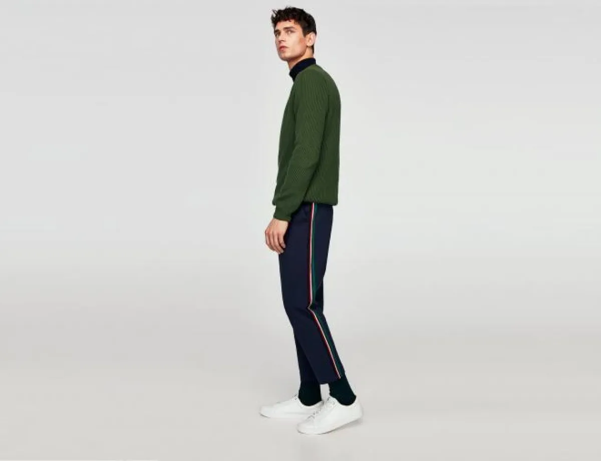 سروال يقع في مكان وسطي بين السراويل الرياضية والتشينو وهو سهل التنسيق ويضيف سمة خاصة ومميزة على الطلة.