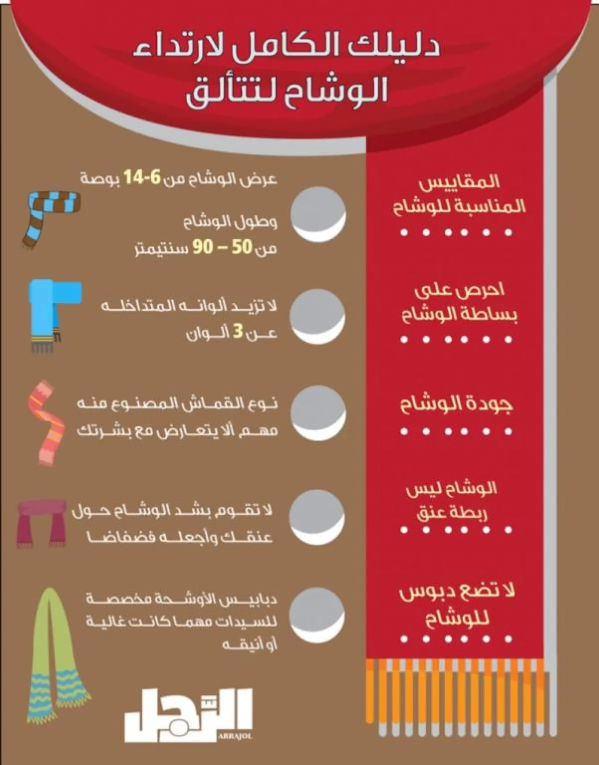 المقاييس المناسبة للوشاح