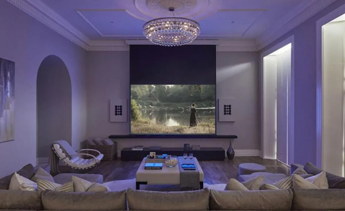 ويحتوي المنزل على غرفة سينما، تتسع لـ 12 مقعداً فخماً، ودش حمام على هيئة شلال، يمكن أن يصلح لخمسة أشخاص، وتُظهر الصور كذلك مطبخاً تكنولوجياً فائقاً، يطل على منظر خلاب لحديقة مبهرة، وقبواً للمشروبات، وما إلى ذلك من الكماليات الباذخة.