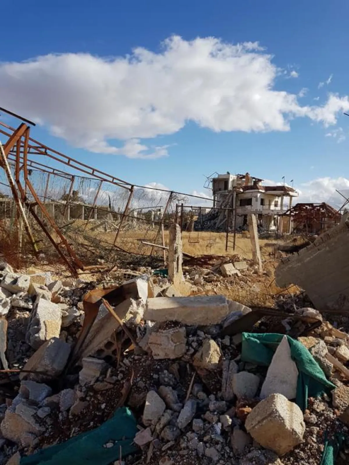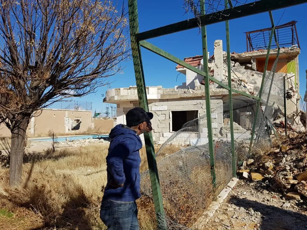 وبدت الفيلّا بحالة دمار كبير، حيث علّق قاسم على الصورة : اليوم وبعد غياب 7سنوات لقدرت شوف تحويشة العمر (الفيلا) ع أرض الواقع اااااااه من قلب محزون .. أي نعم ".