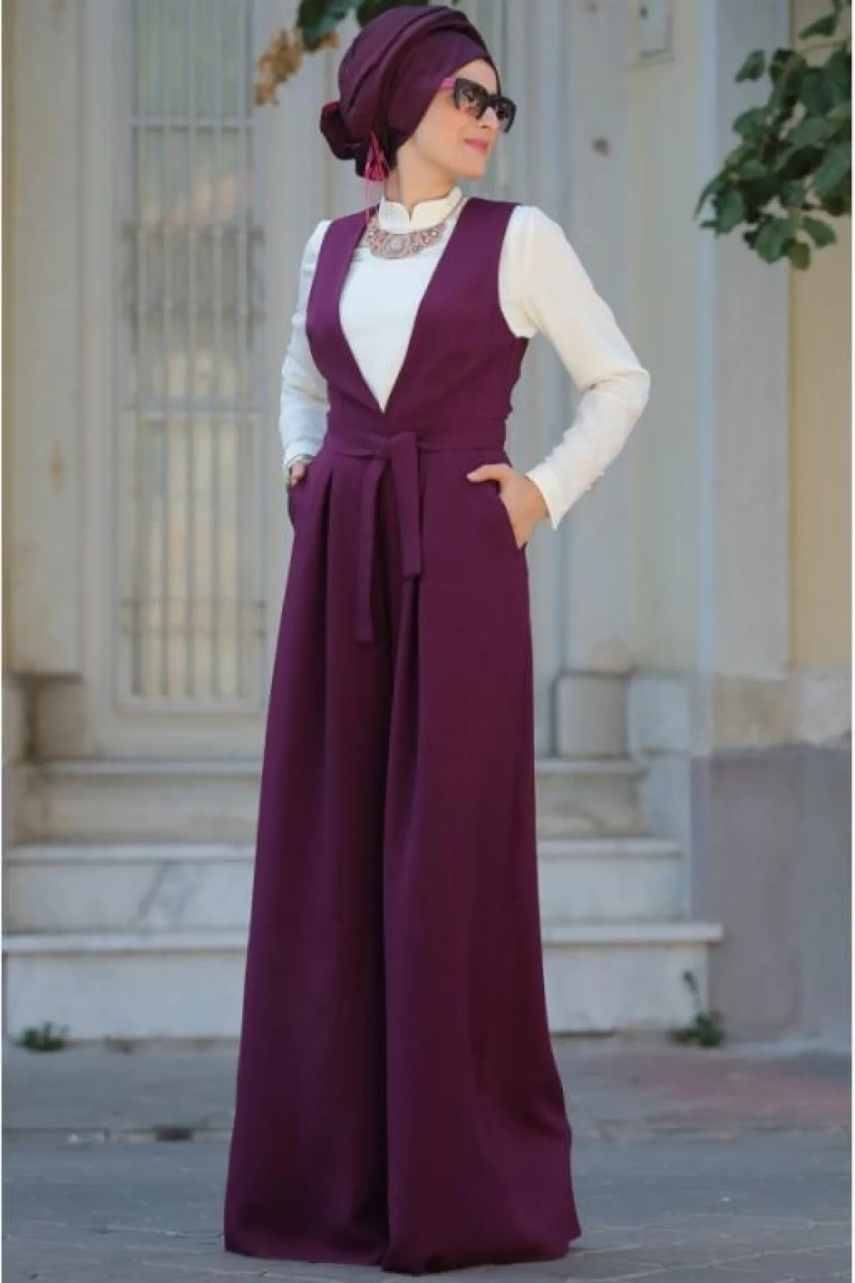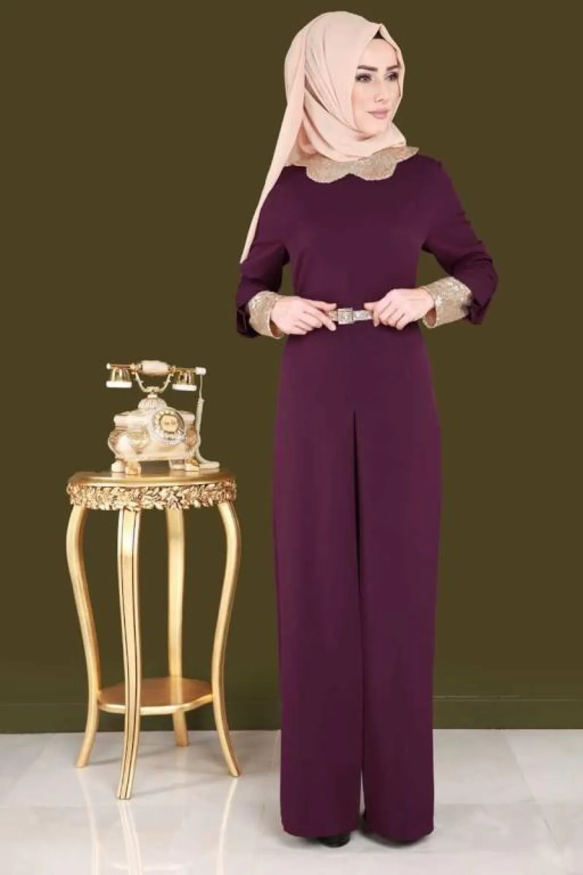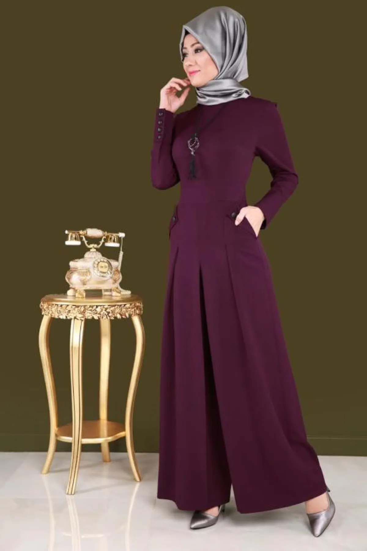 -عليكِ اختيار حجاب هادىء وعصري، واعتماد لفّة بسيطة أو تربان لإظهار أناقة الجمبسوت .