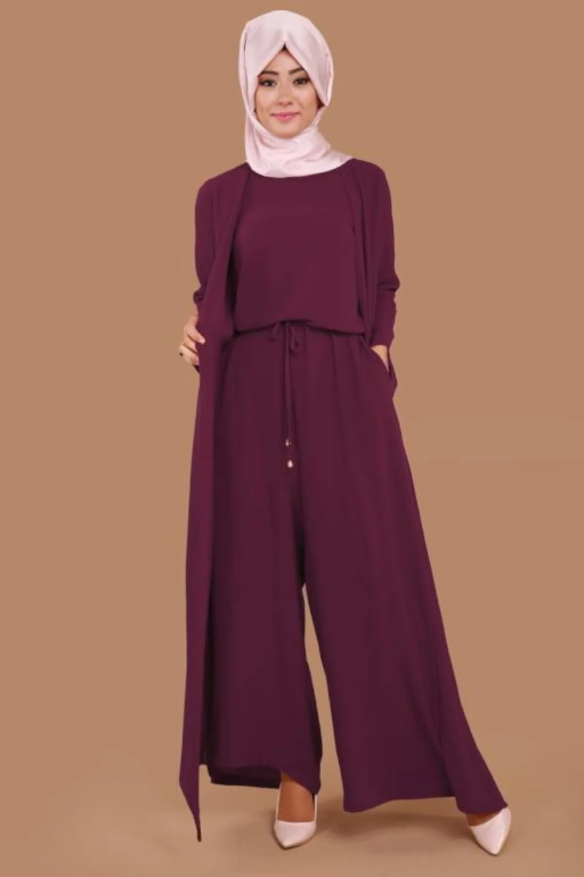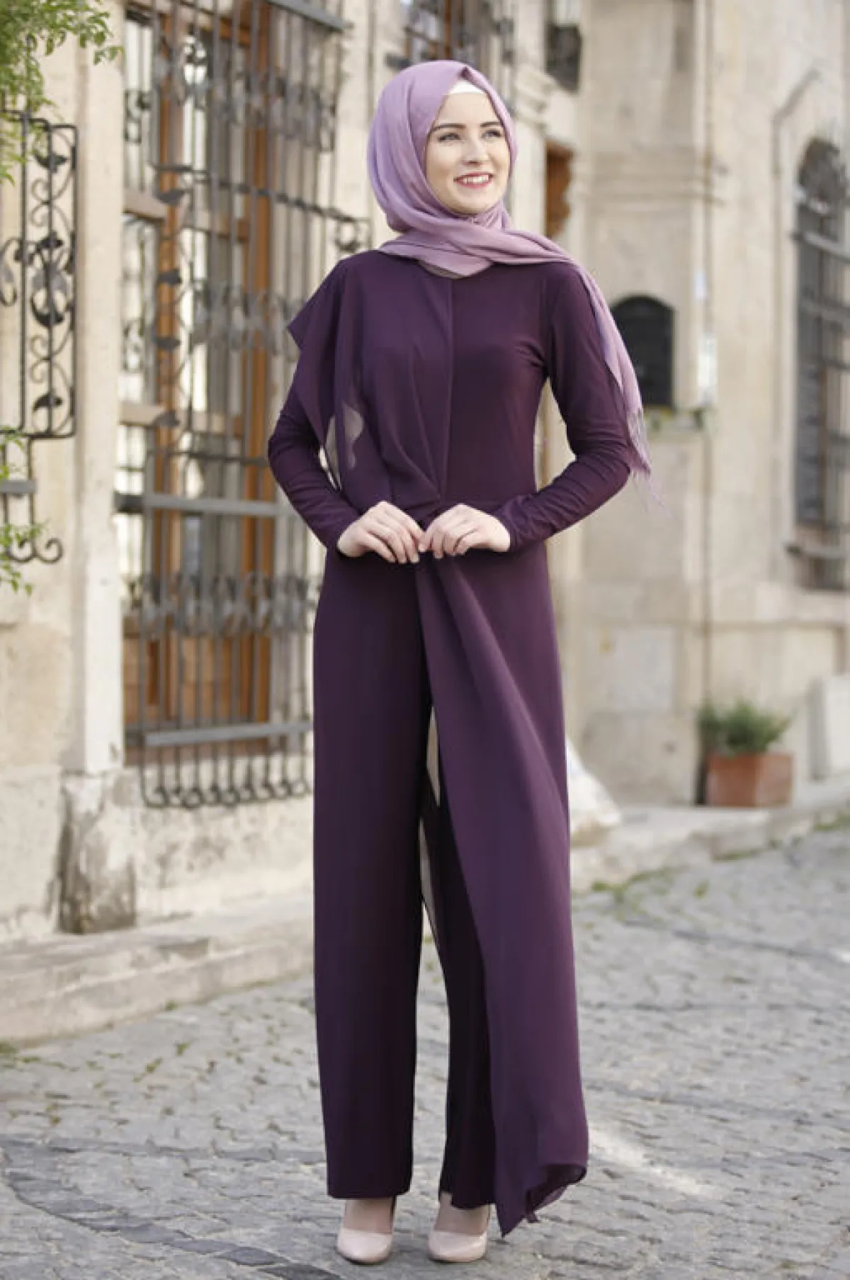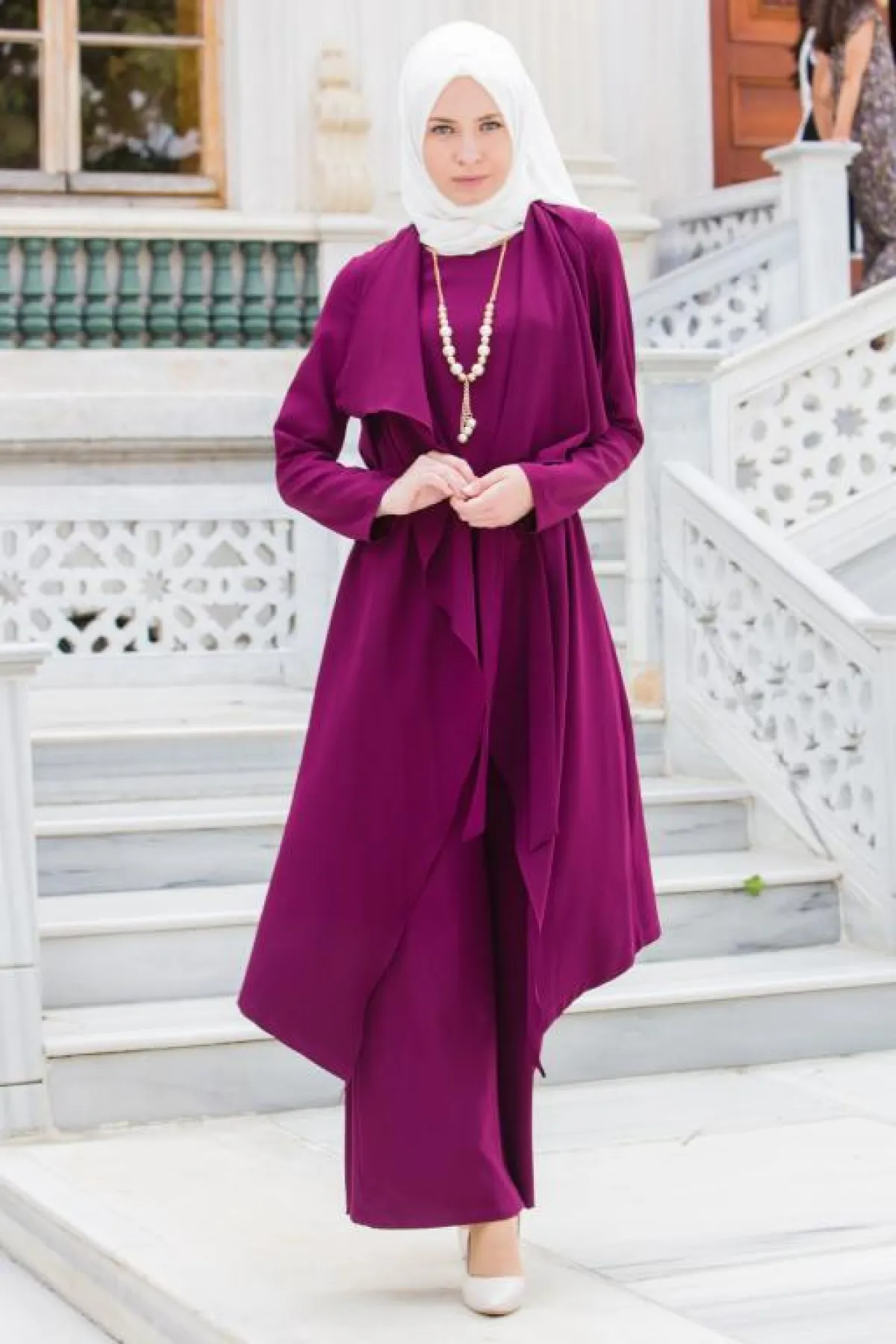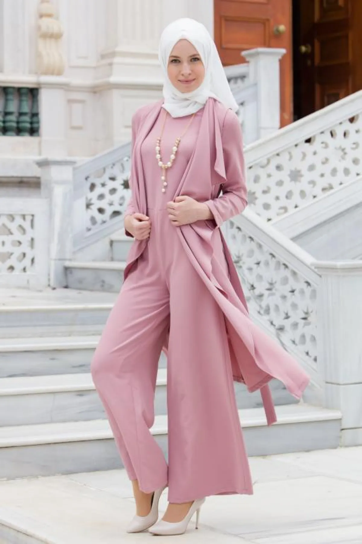 -عليكِ اختيار حجاب هادىء وعصري، واعتماد لفّة بسيطة أو تربان لإظهار أناقة الجمبسوت .