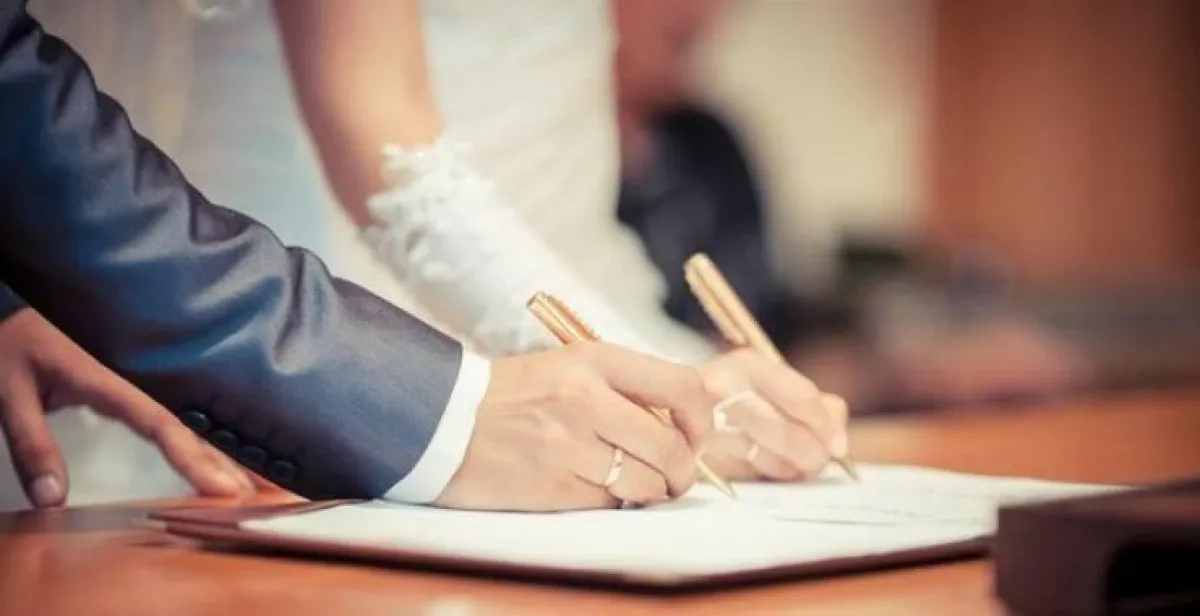 أحد العدول وهو يوثق لعقد الزواج