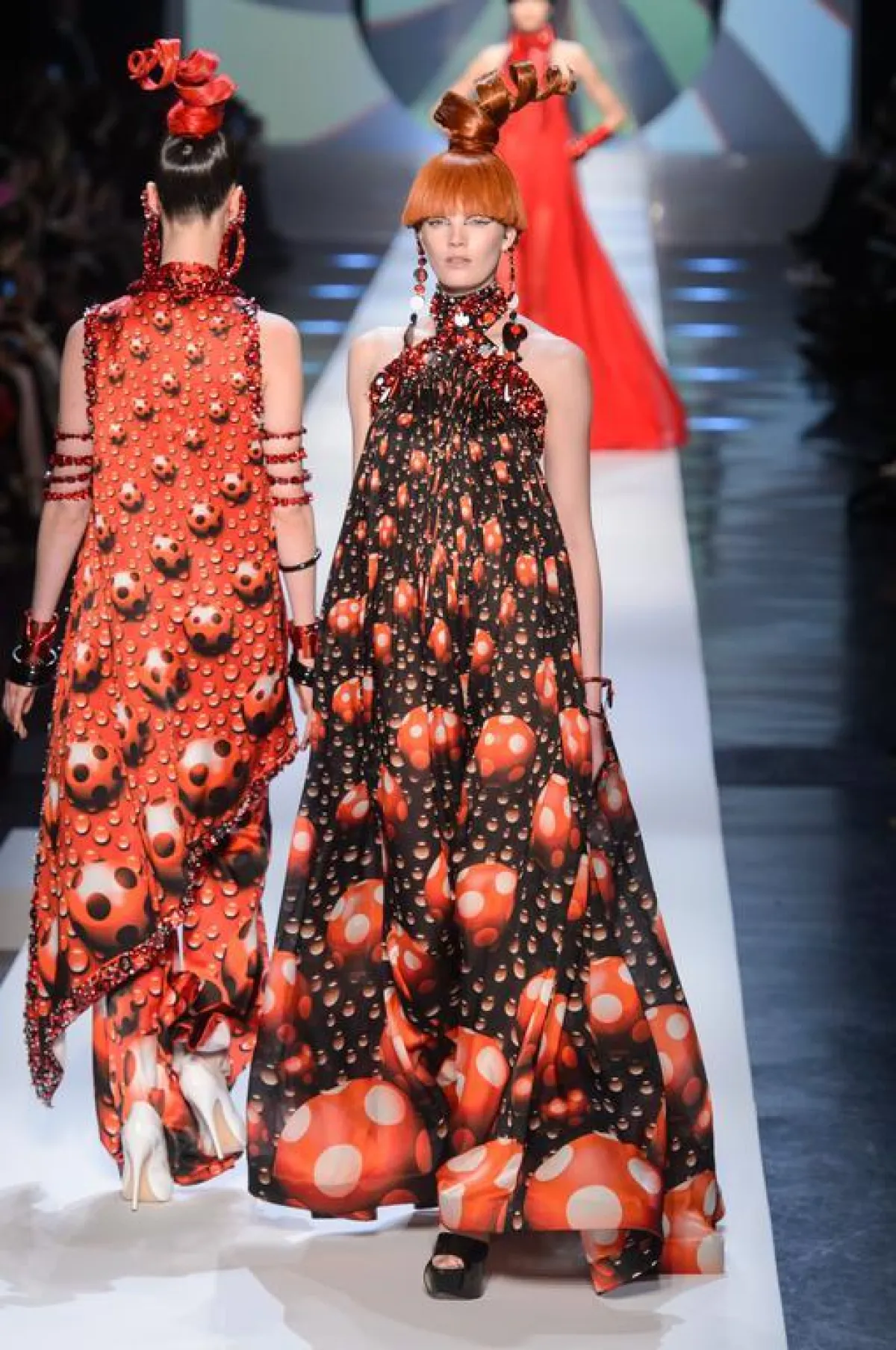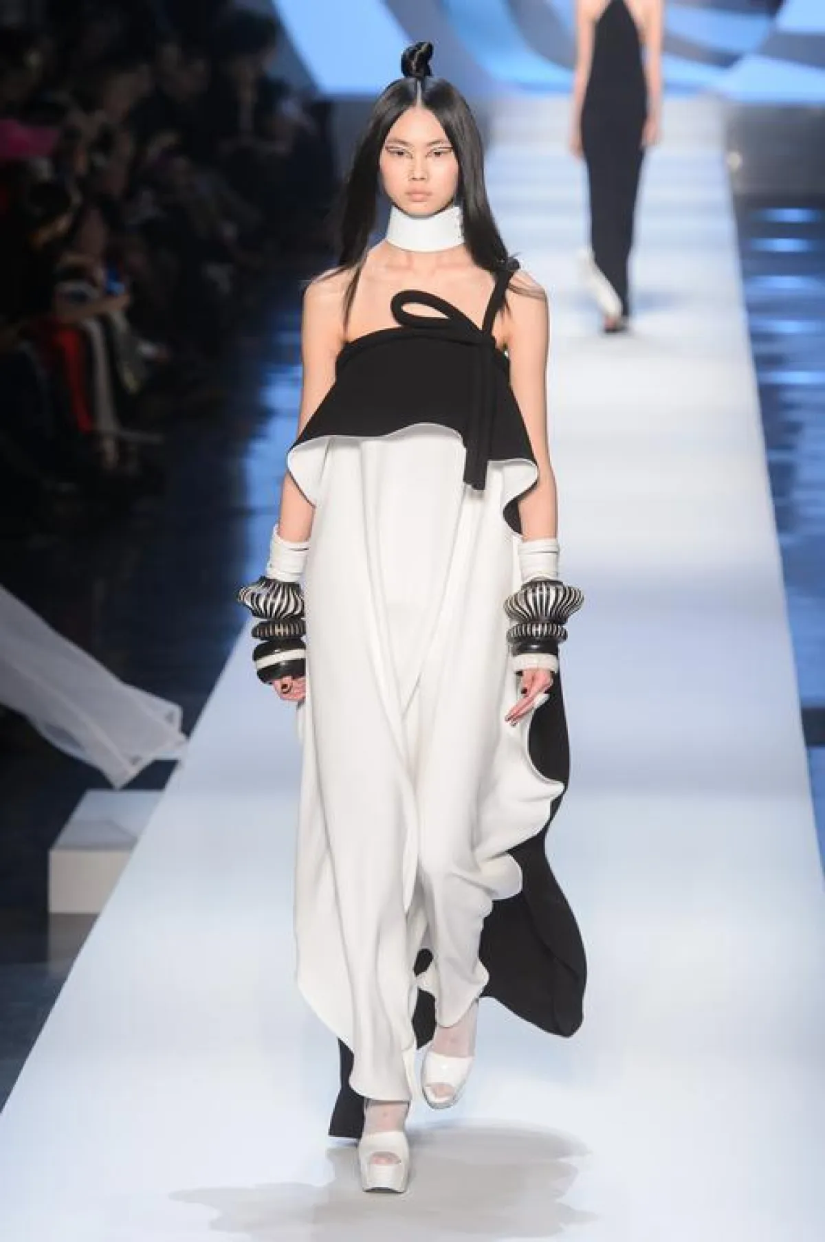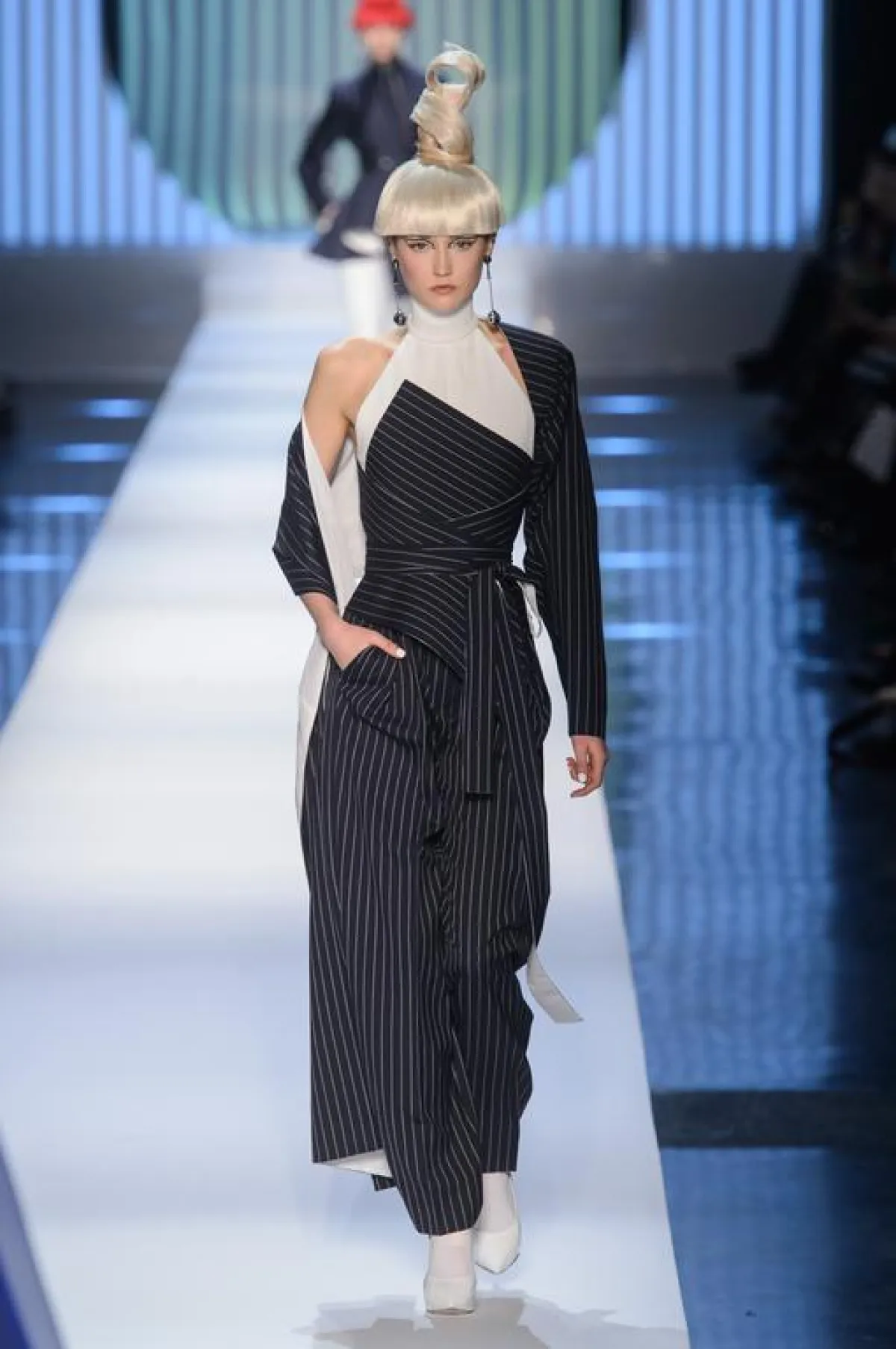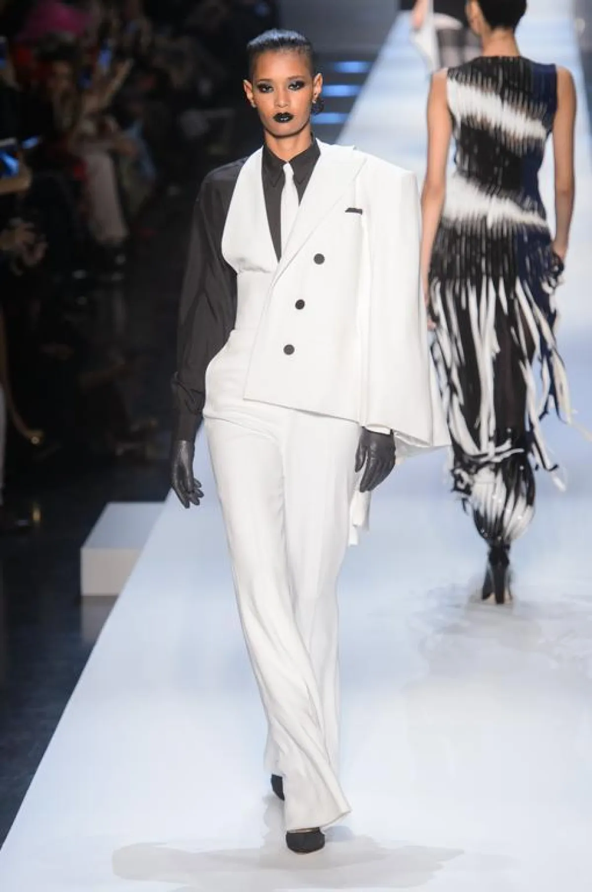 بدوره بقي المصمم الفرنسي جان بول غوتييه Jean Paul Gaultier وفيا لأسلوبه المشاكس الذي برز هنا من خلال أزياء ذات قصات جريئة. وغلبت على العرض البدلات الرجالية التي أعاد غوتييه مراجعتها، وخاصة منها الكنزات التي جاءت غنية بالأفكار التجديدية. أما الفساتين، فرغم قصاتها الجريئة، إلا أنها اتسمت بالكثير من التجديد في اُسلوب تصميمها. وتخللت العرض الذي طغى عليه اللونان الأبيض والأسود بعض الألوان الفاقعة، وبالأخص منها الأصفر والأخضر والزهري الصارخ. واتسم العرض بحضور مُلفت لبعض الاقمشة المطبعة، بينما جاء حضور الجلد محتشما، مقارنة بما هو معتاد في عروض جان بول غوتييه.