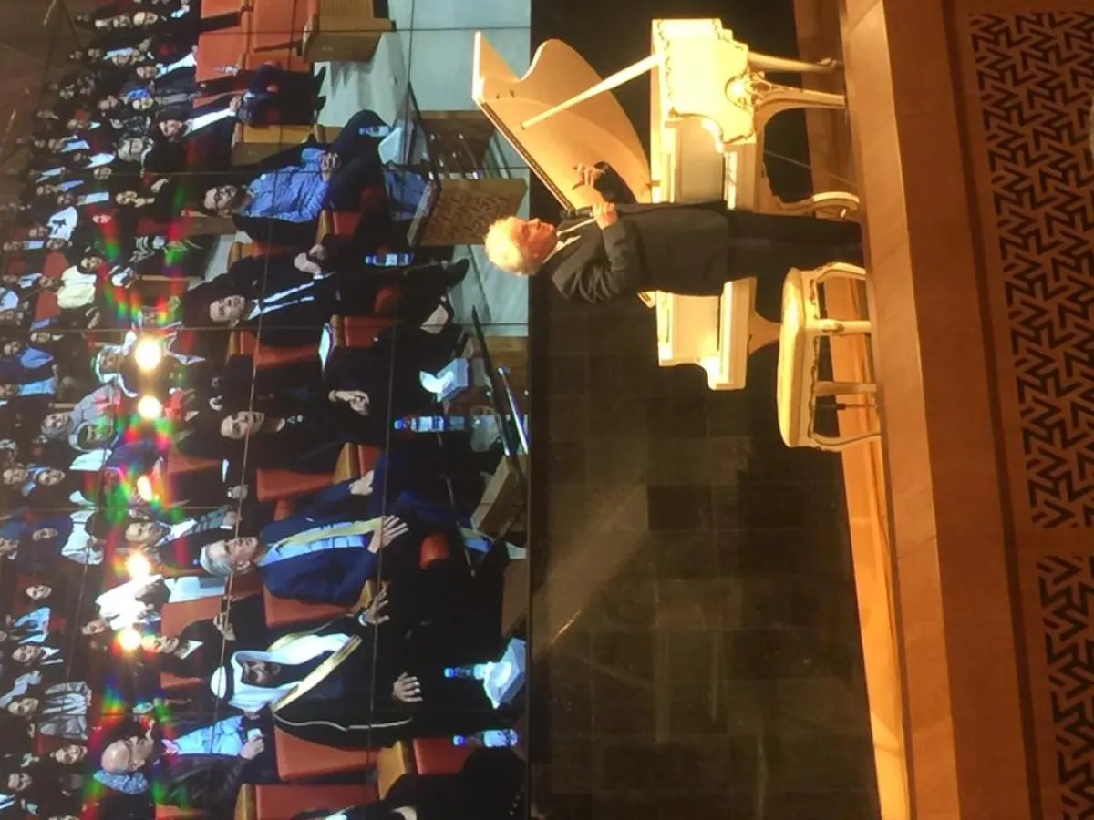 بدأ الحفل بكلمة شكر وترحيب ألقاها السفير الفرنسي فرانسوا غوييت، حيث رحب بالحضور قائلاً: "سيداتي سادتي، إنها سهرة استثنائية للموسيقى اليوم، فهذا المساء سيتسنى لنا الاستماع والاستمتاع في هذه الحفلة الموسيقية، حيث سنصغي لـ"إيف هنري"، الذي أحيى حفله الأول عندما كان في سن العاشرة في باريس، وعندما بلغ عمر 22 عاماً، فاز بالجائزة الأولى في مسابقة روبرت شومان في ألمانيا، وكانت حياته المهنية الاستثنائية تسلسلاً منطقياً لسيرته، إذ أحيا حفلات موسيقية وحفلات برفقة أوركسترا من الولايات المتحدة حتى اليابان مروراً بألمانيا والصين.