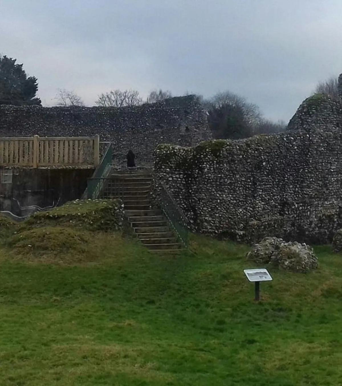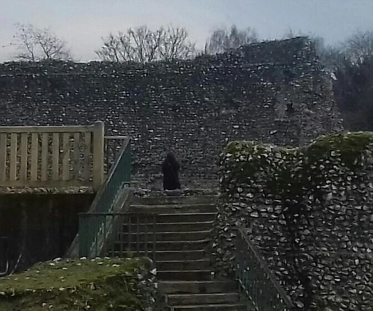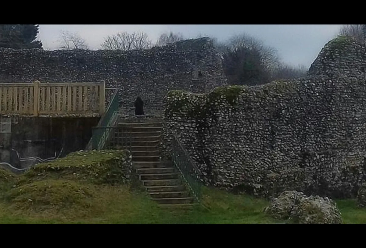 وفي التفاصيل، فقد فوجئ رجل بريطاني يدعى «جون ويكس»، 50 عاماً، بظهور هيكل غريب أسود اللون يعتقد أنه شبح في خلفية الصور التي التقطها برفقة ابنه الذي يبلغ من العمر 12 عاماً، أمام قلعة إينسفورد التاريخية في مدينة كينت.