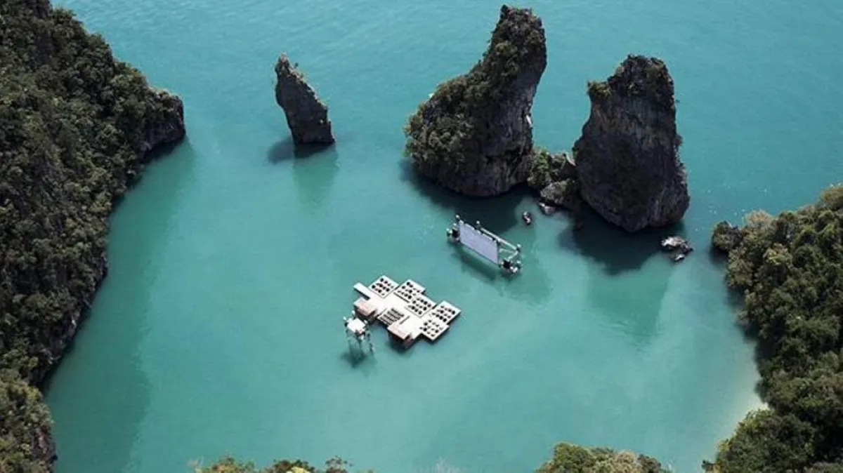 متعة الجلوس في سينما The Archipelago تايلاند، هو النظر إلى جمال الطبيعي وشاشة السينما، حيث تطفوا شاشة السينما على سطح الماء بجانب أحد الجزر الاستوائية الخلابة.