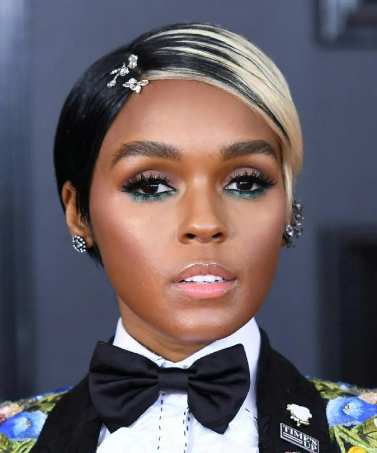 Janelle Monae : اعتمدت أجمل مكياج عيون ملون لصاحبات البشرة السمراء. من خلال تطبيق اللون الزهري الداكن، المائل إلى البنّي عند الجفن العلوي المتحرك، والظلال البيج عند الجفن العلوي الثابت. واكتفت بخط رفيع من الأيلاينر عند خط الرموش مع الكثير من الماسكرا. أما الجرأة فكانت عند الجفن السفلي، حيث استخدمت اللون الأخضر تحت خط الرموش، وطبّقت الخصل المتفرقة من الرموش. واكتملت الغرابة مع لون شعرها الذي انقسم إلى جزء أسود وجزء أشقر مع حبوب السواروفسكي كاكسسوار عند أول الفرق.