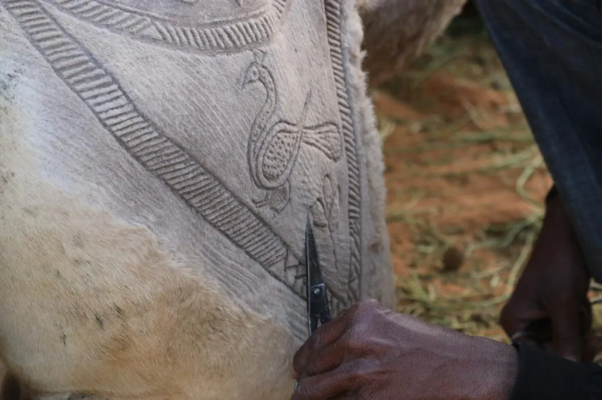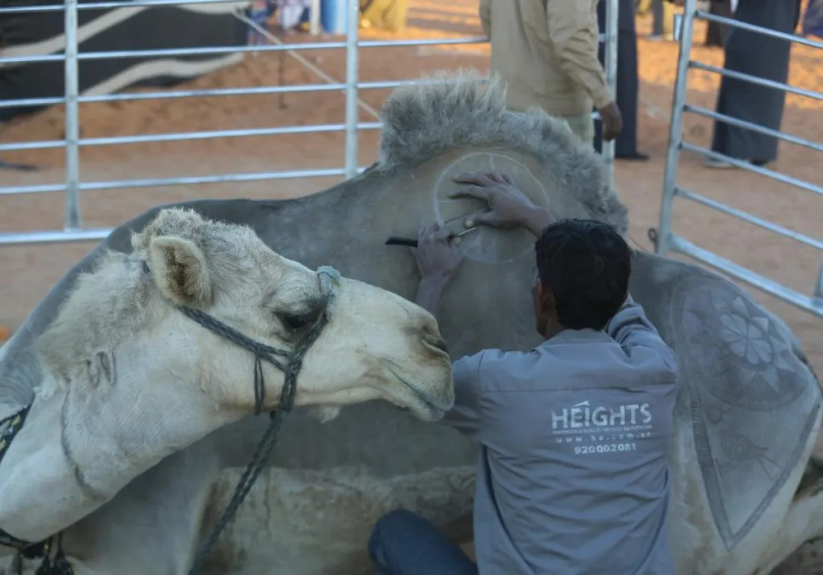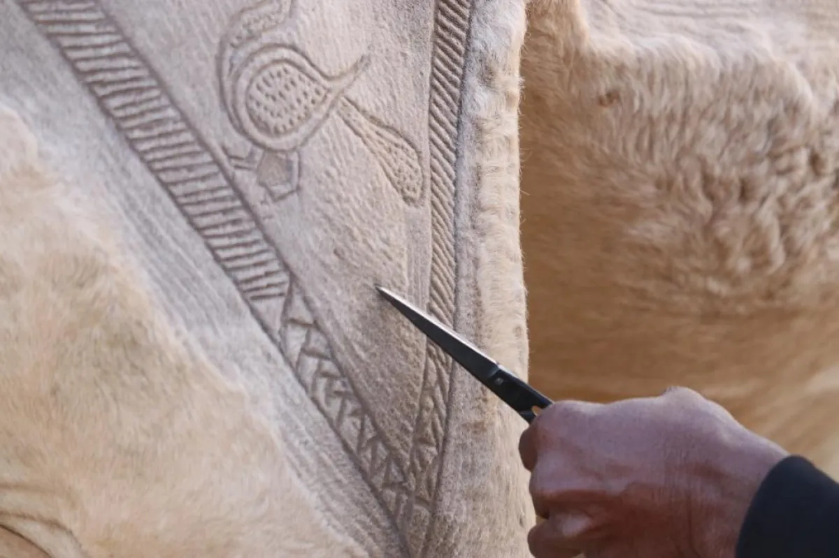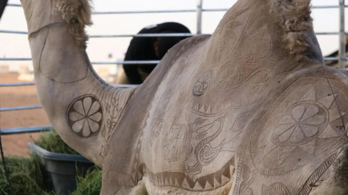 حيث قام الفنان الهندي تيلوك ناي باستخدام مقصه على أجسام الإبل لتحويلها إلى لوحات مزخرفة، تغمرها الرسوم المتنوعة.