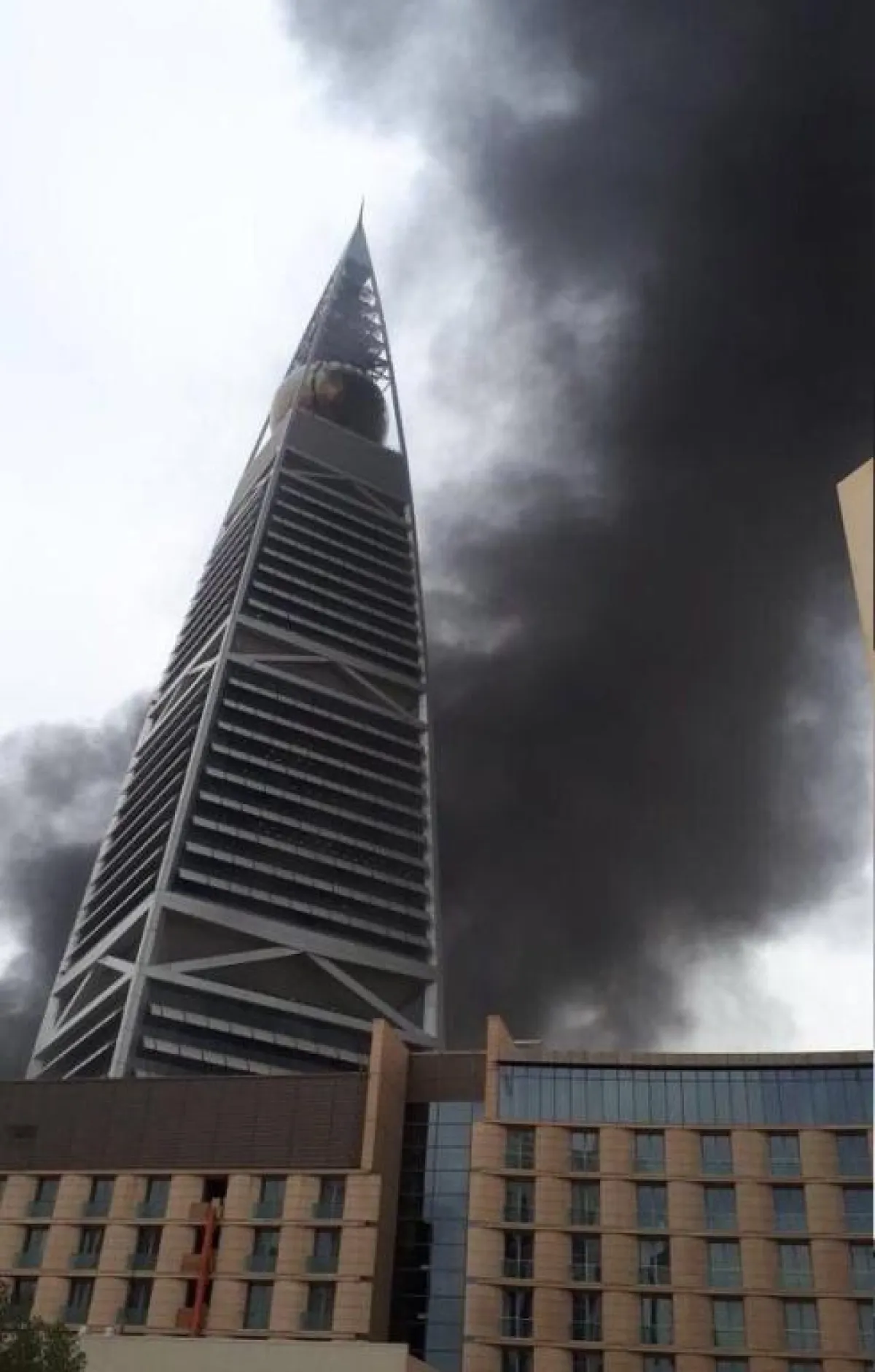 وعلى الرغم من أن الكثيرين قالوا: إن الحريق اندلع في نفس برج الفيصلية، إلا أن مديرية الدفاع المدني في الرياض صرحت بأن الحريق اندلع في مبنى قيد الإنشاء بجوار البرج، وليس في البرج نفسه، وتمت السيطرة عليه دون أي إصابات بشرية.