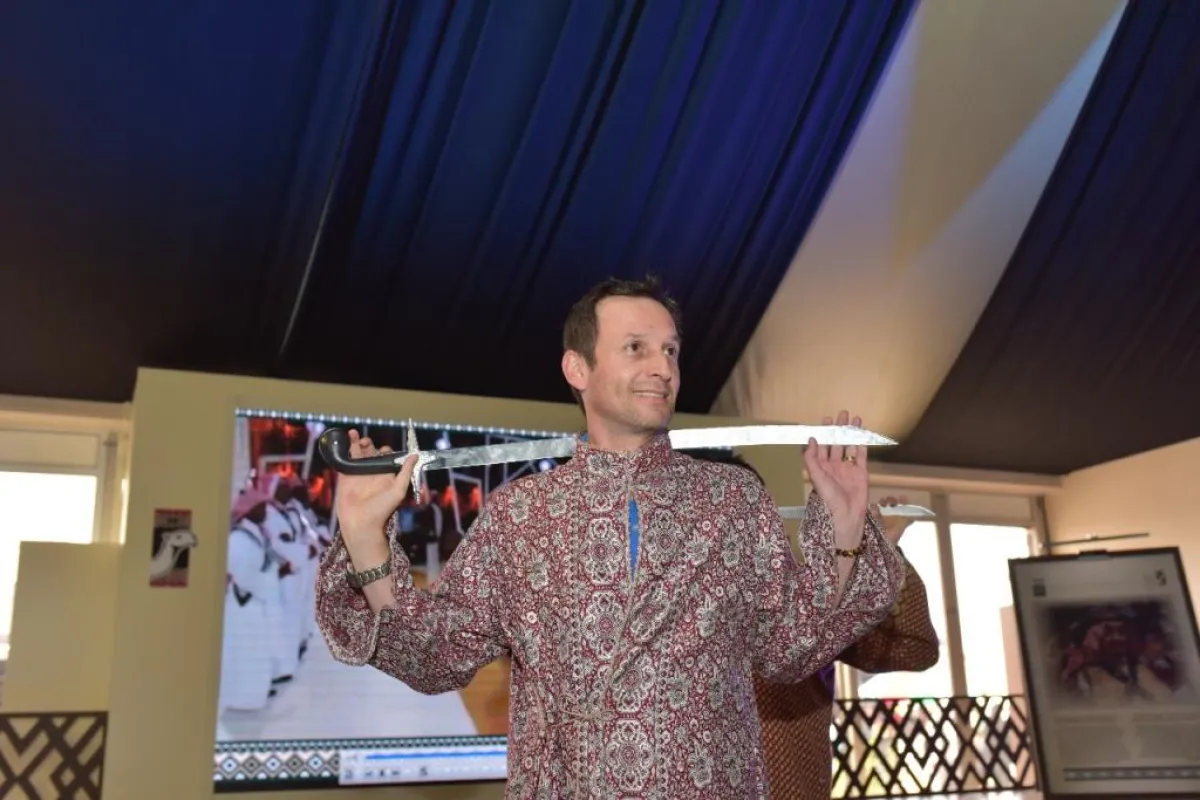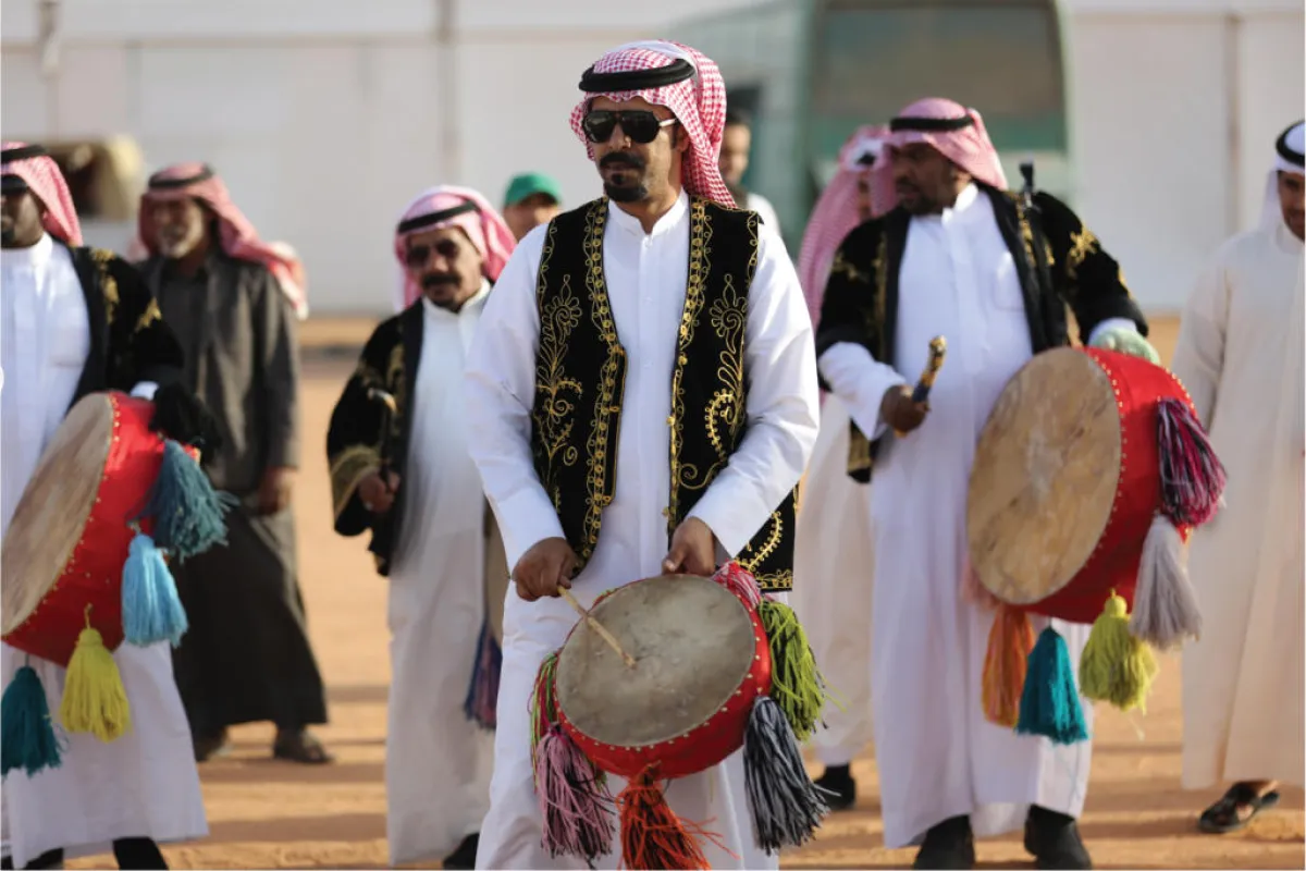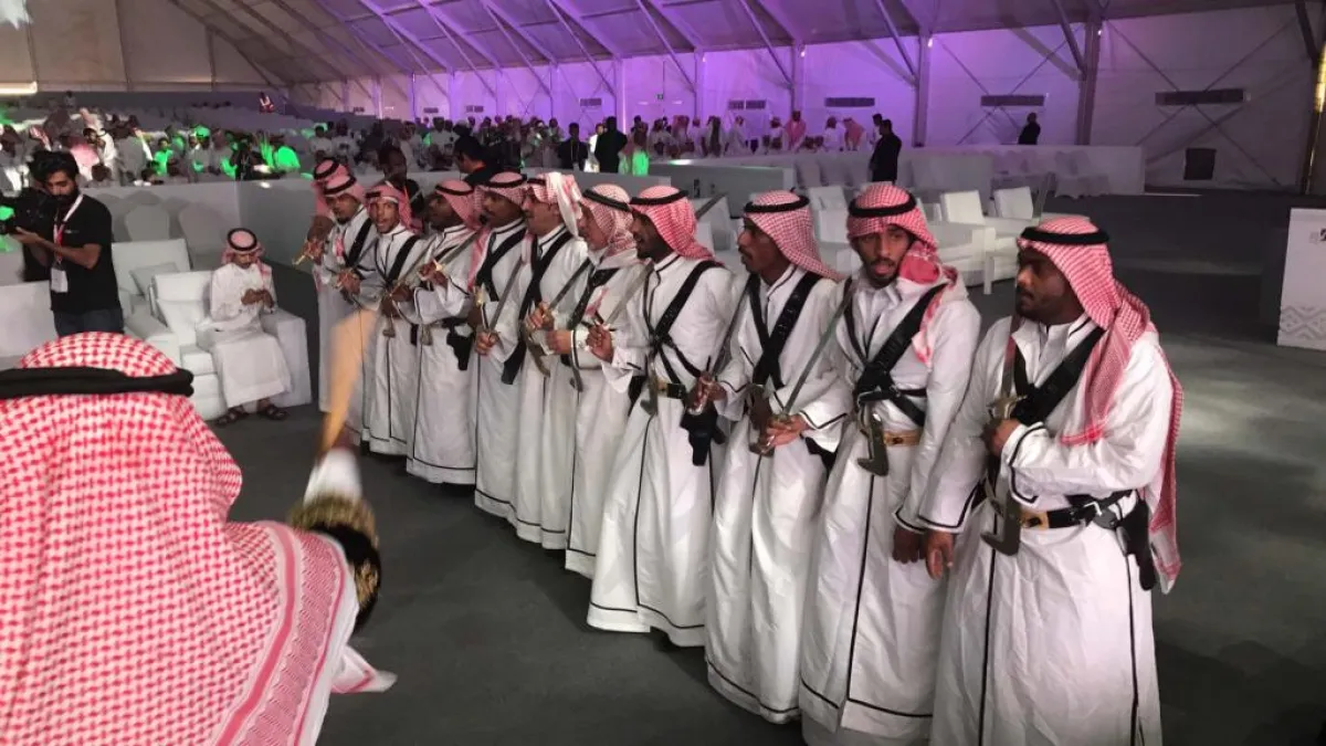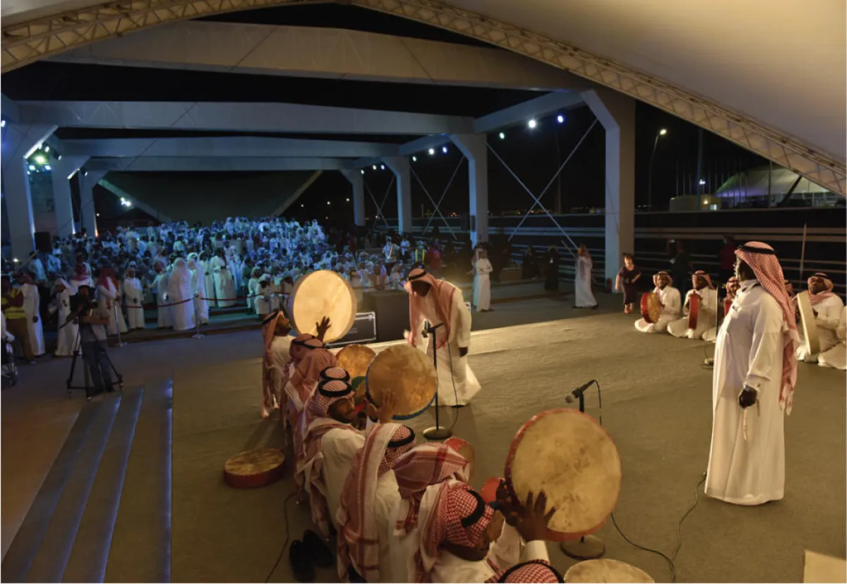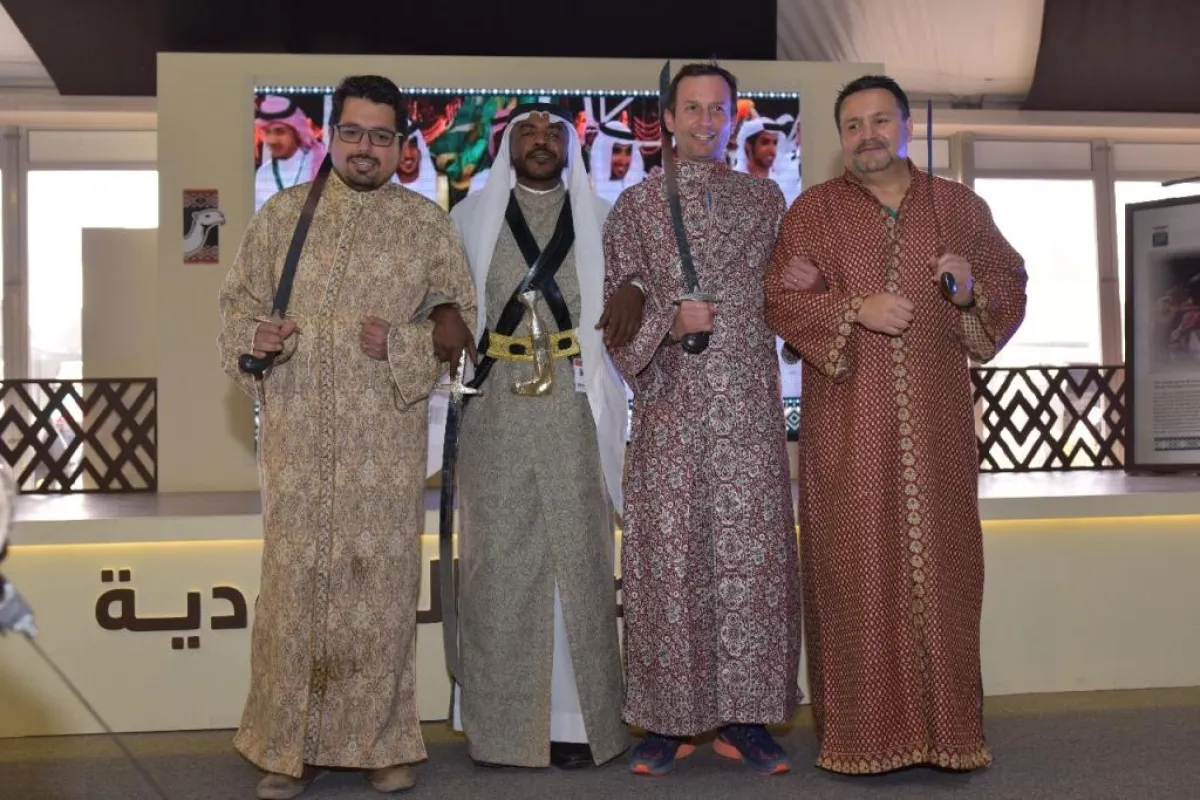 شهد جناح العرضة السعودية في مهرجان الملك عبدالعزيز للإبل حضوراً مميزاً، حيث تدرَّب أكثر من 300 شخص على فنون العرضة، الرقصة الرسمية في المناسبات السعودية، وتعرَّفوا على تراثها وأصالتها.