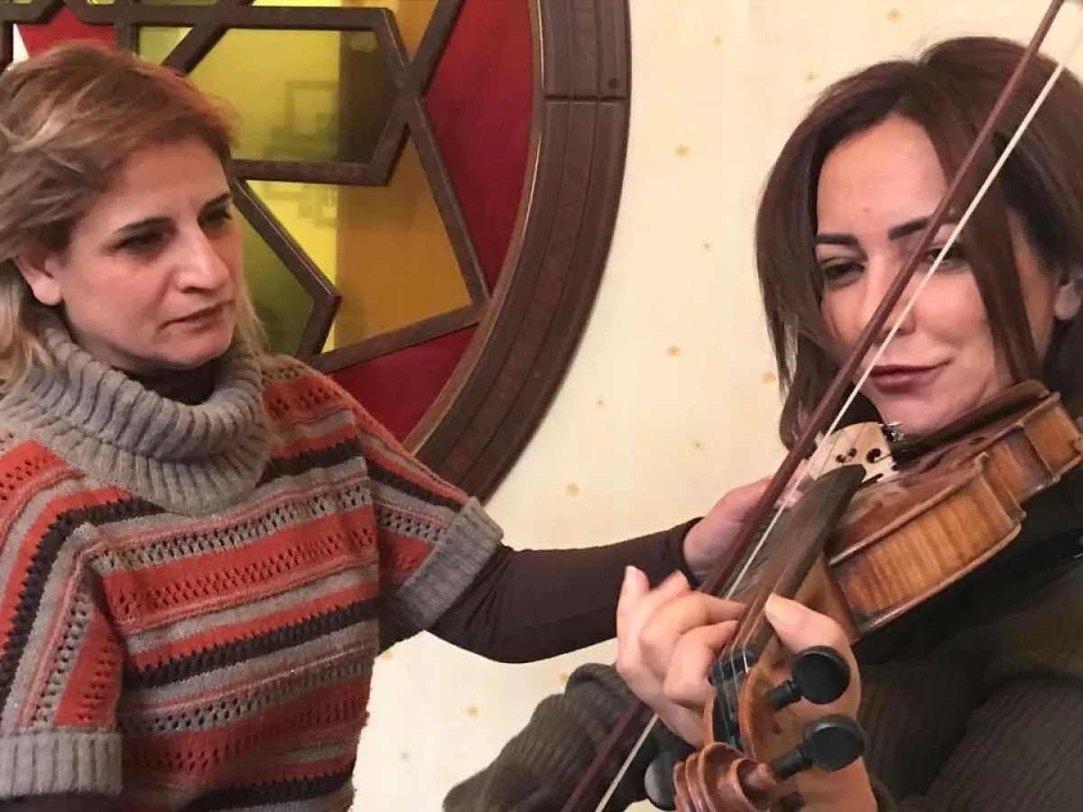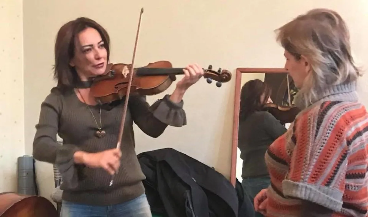 نشرت النجمة السورية أمل عرفة صورًا لها وهي تتلقى تدريبات للعزف على ألة الكمان تحت إشراف مدرسة متخصّصة.