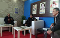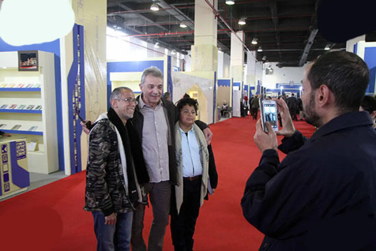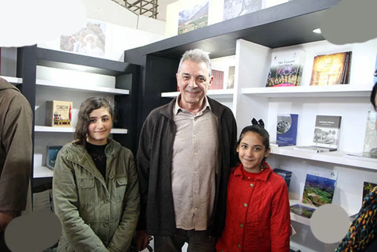 محمود حميدة مع حفيده وأحد زوار المعرض