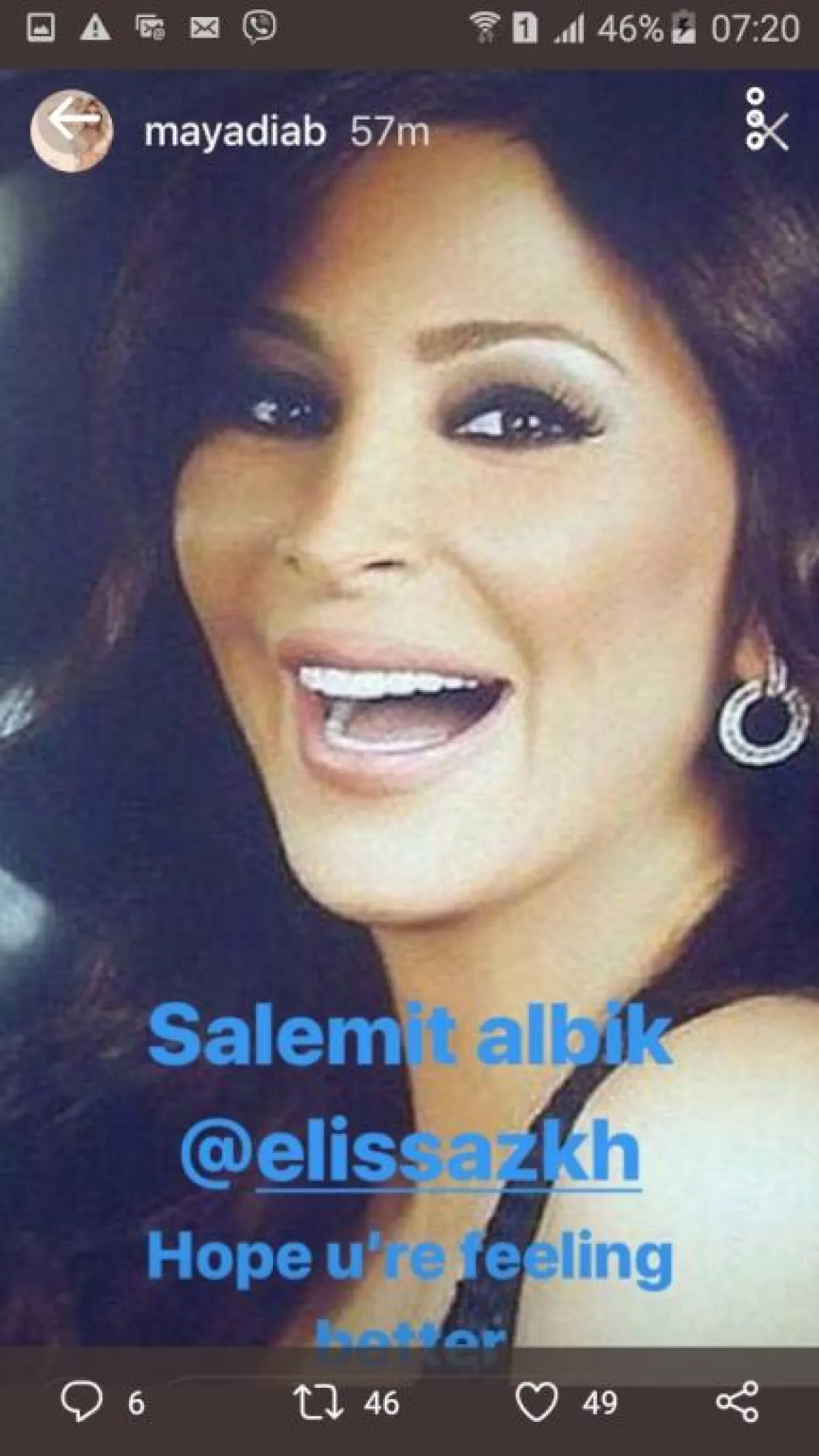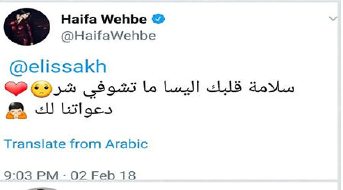 وقال أمين أبي ياغي لـ سيدتي نت":" الحمد لله، مبدئياً إليسا أفضل اليوم، وبعد قليل يمكن أن أعرف المزيد".