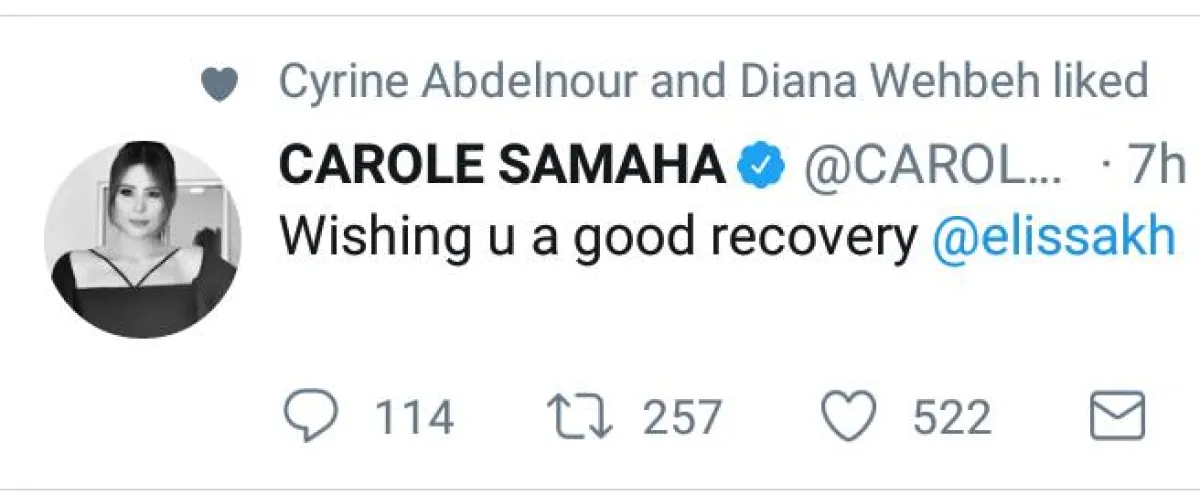 وسارع عدد من الفنانين إلى دعم إليسا وتمنوا لها الشفاء السريع، وفي مقدمتهم هيفاء وهبي وكارول سماحة ونانسي عجرم ومايا دياب وأحلام وعاصي الحلاني ونوال الزغبي ونجوى كرم وسيرين عبد النور.
