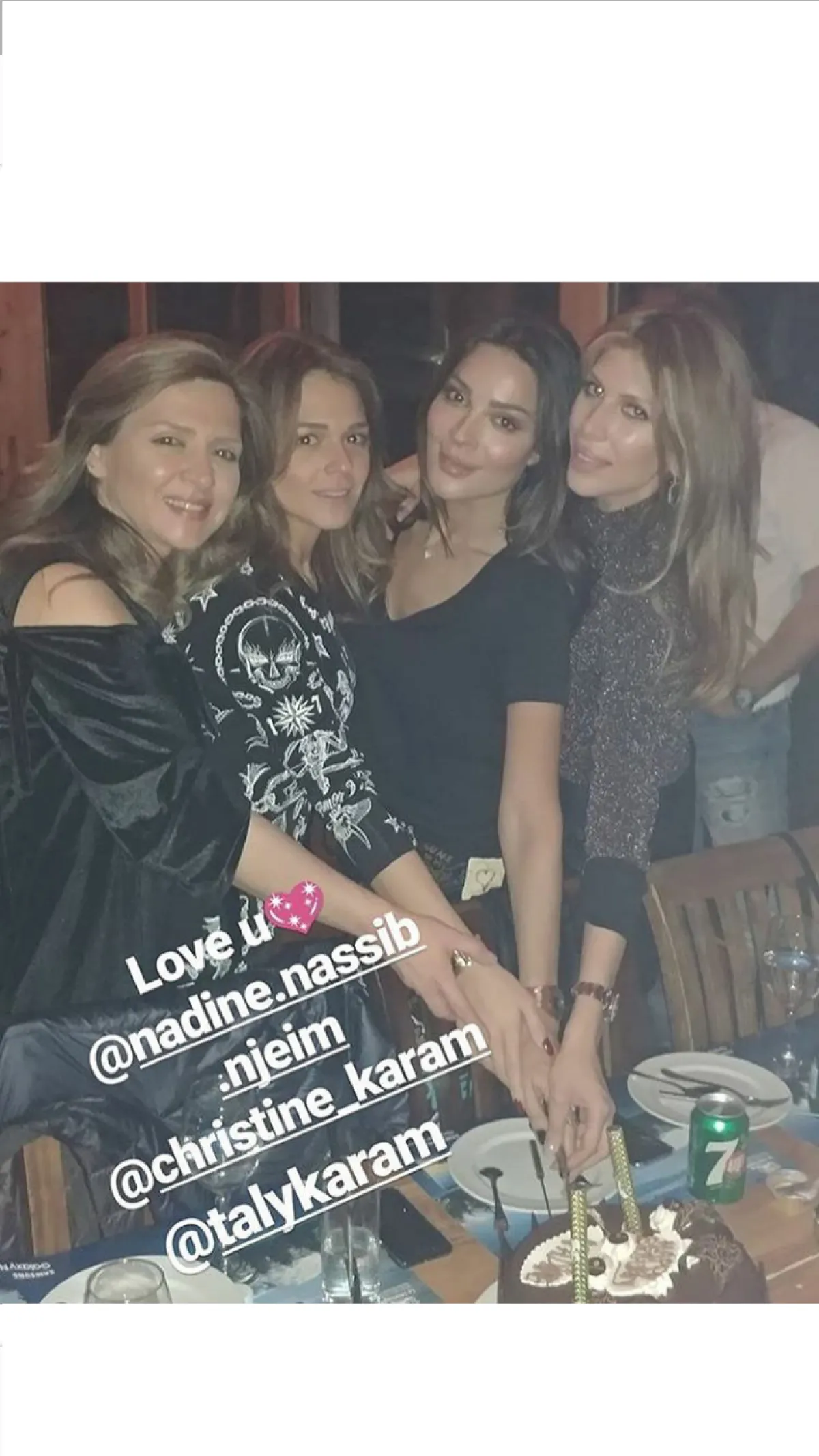 نادين إحتفلت بوقت مبكر وقبل أربع أيام على حلول عيد ميلاها، ربما لأسباب لها علاقة بتصوير مسلسها الجديد "طريق" الذي ستنافس به في الموسم الرمضاني 2018.