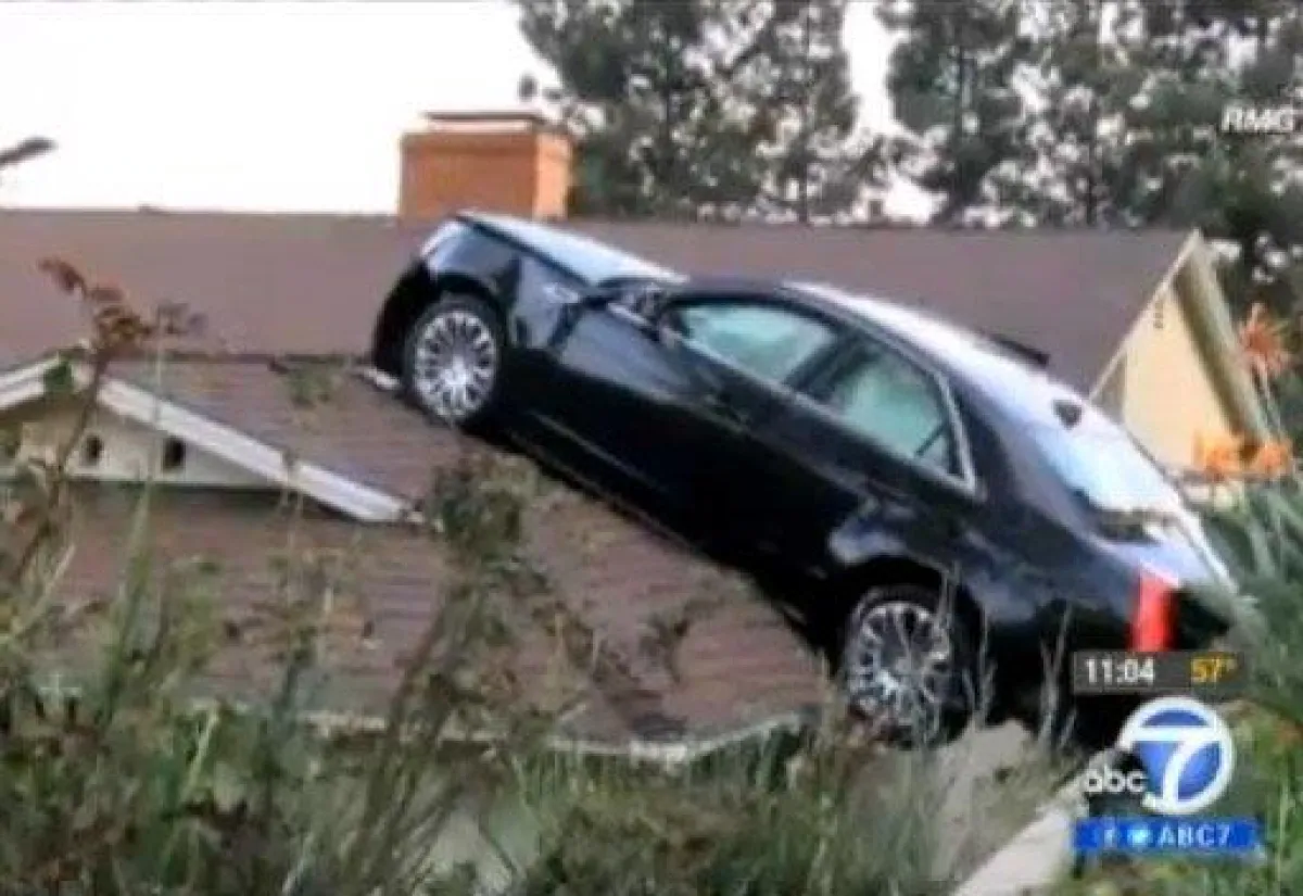 شهدت مدينة غلينديل في ولاية كاليفورنيا الأمريكية حدثاً طريفاً حيث أوقف أحد سكانها سيارته على سقف بيت جاره من دون قصد.