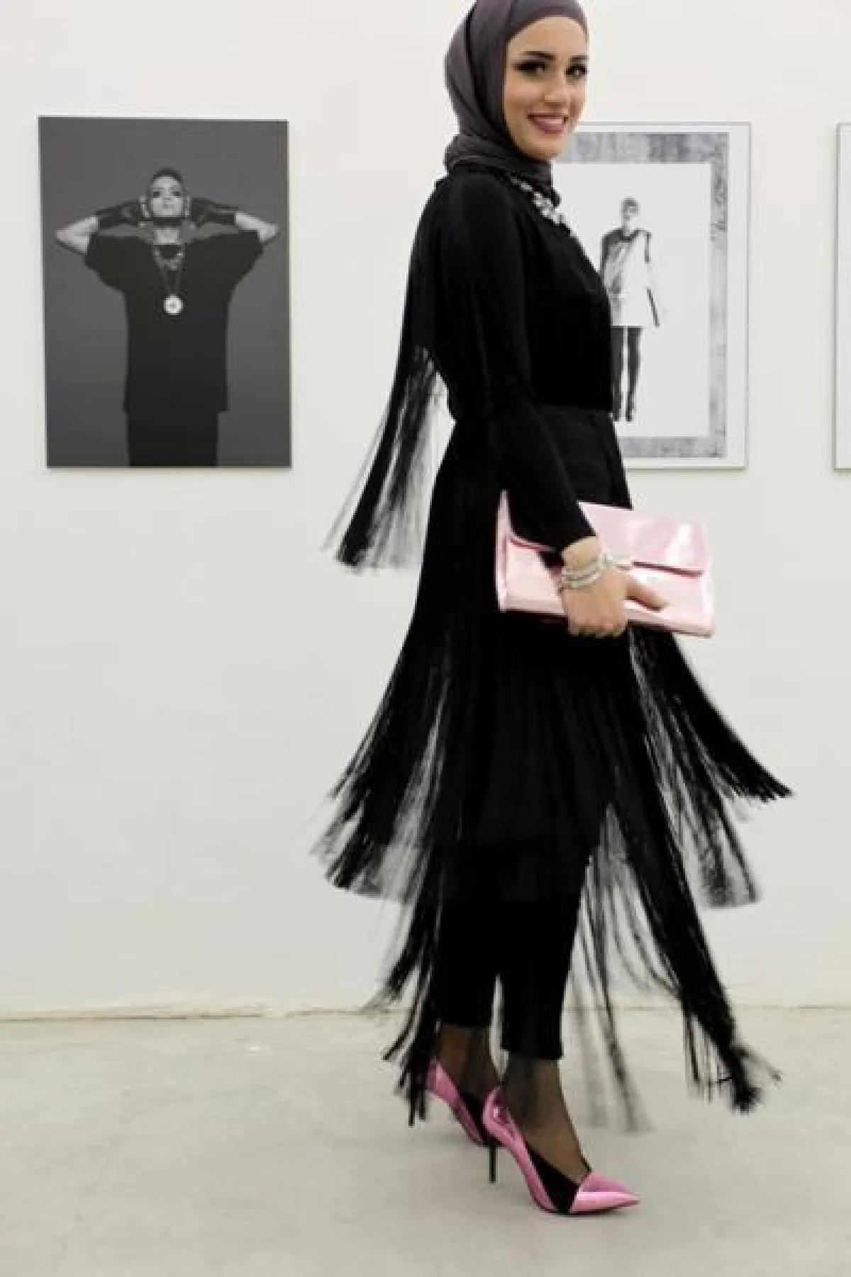 أيضًا يمكنك ارتداء أزياء مزينة بالشراشيب الطويلة، سواء مع التنانير أو السراويل؛ فتمنحك لمسة مميزة تتناسب مع المساء، مثل: إطلالة الفاشينيستا دلال الدوب باللون الأسود.