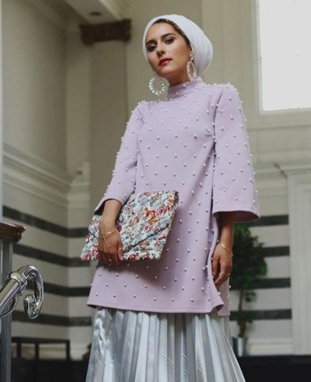 يمكن أن تعتمدي كنزة بسيطة من الحرير أو الدانتيل أو القطن المطرز مع تنورة Ball Gown، سواء من الستان مع ثنيات وطيّات مثل إطلالة الفاشينيستا Leena Asaad، أو من طبقات التول، مثل: إطلالة الفاشينيستا آسيا بالتنورة التول البيضاء.