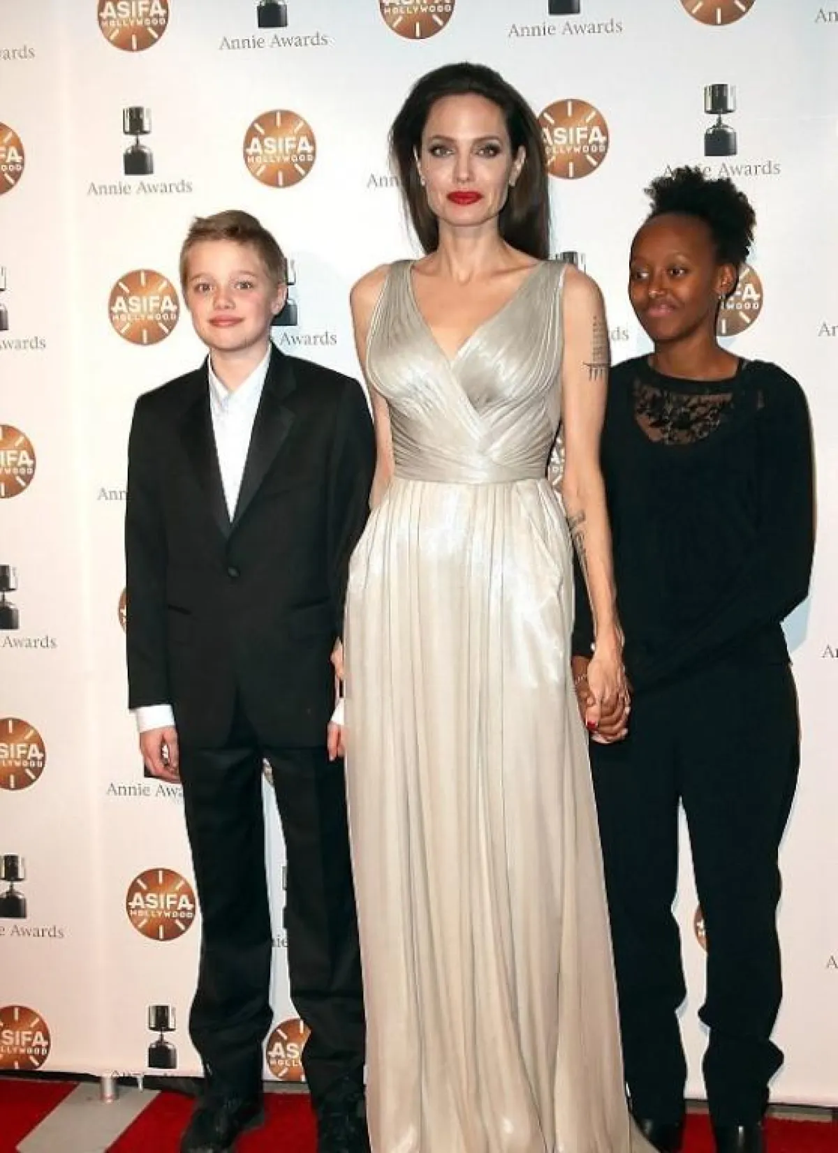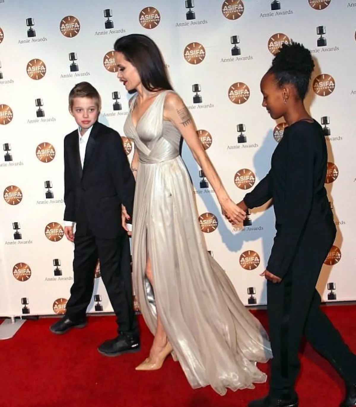 رغم أنها تختار اللون الأسود في معظم اطلالاتها، إلا أنّ النجمة العالمية أنجلينا جولي Angelina Jolie، تخلت عنه لصالح اللون الفضي في حفل توزيع جوائز Annie ، الذي أقيم في مدينة لوس أنجلوس الأمريكية.