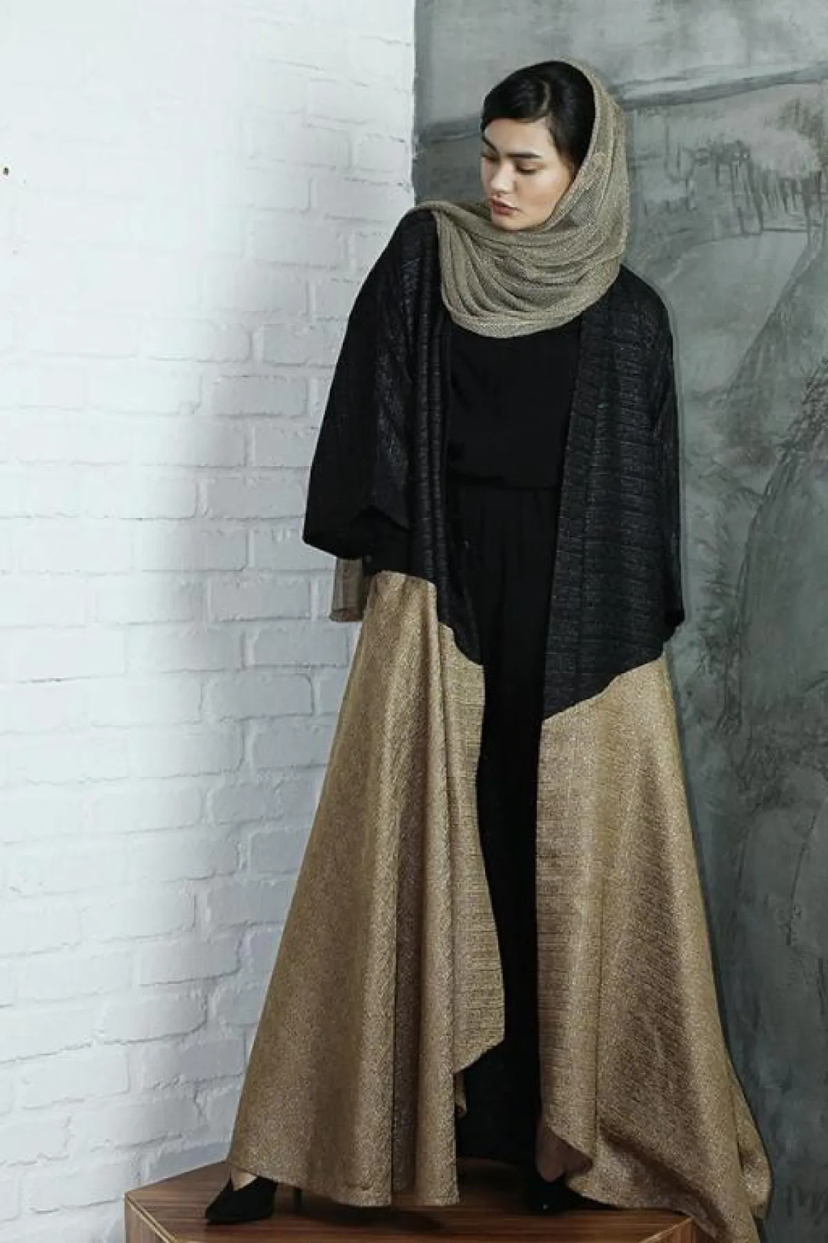 عبايه بتصميم عصري وفاخر باللونين الأسود والذهبي