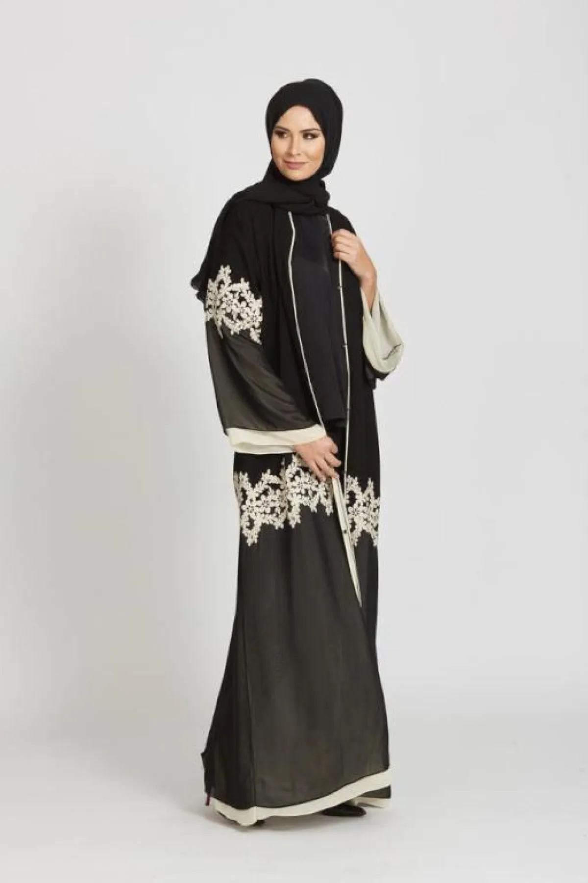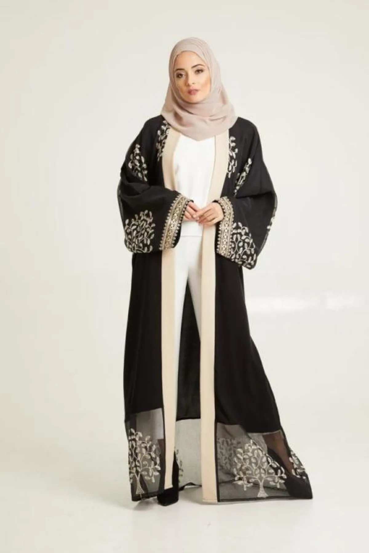 عبايه أنيقة باللونين الأسود والذهبي من ABAYA BUTH