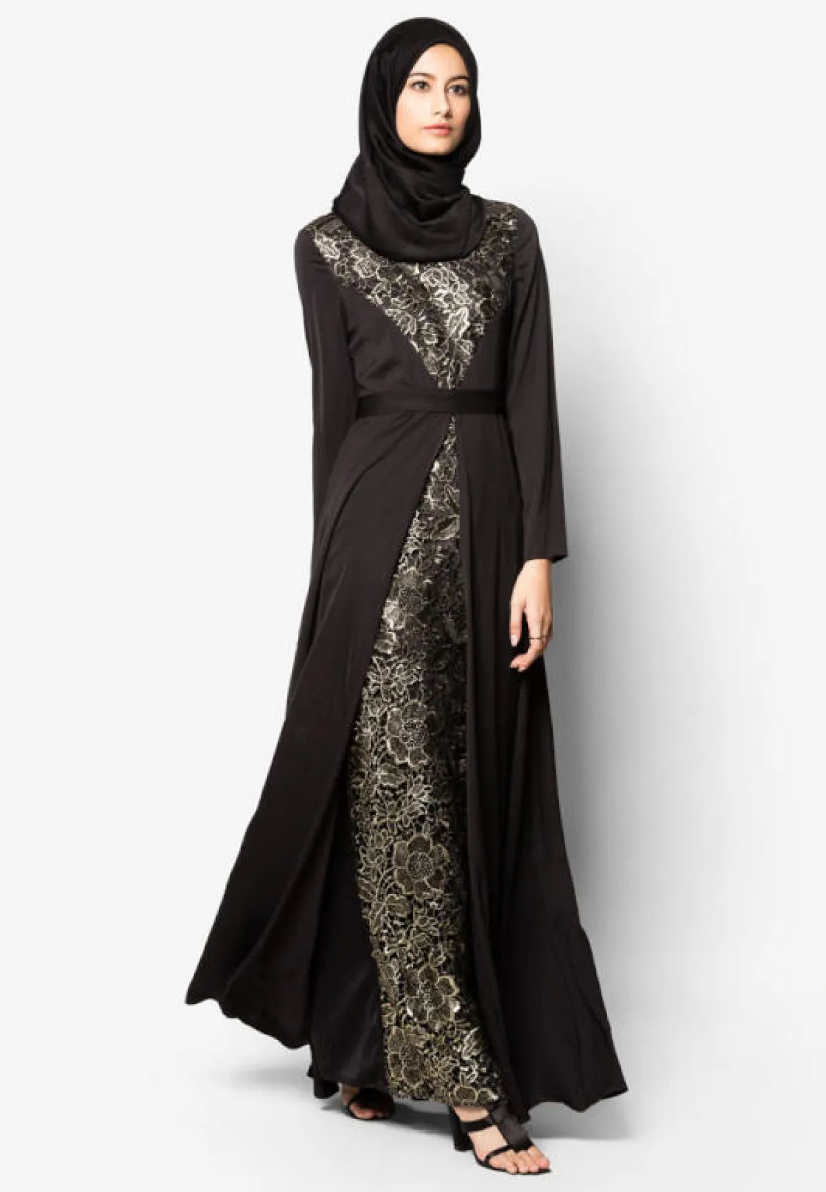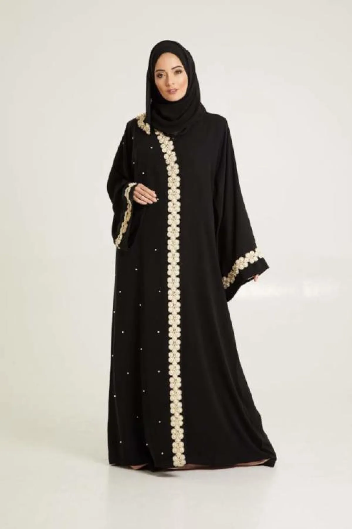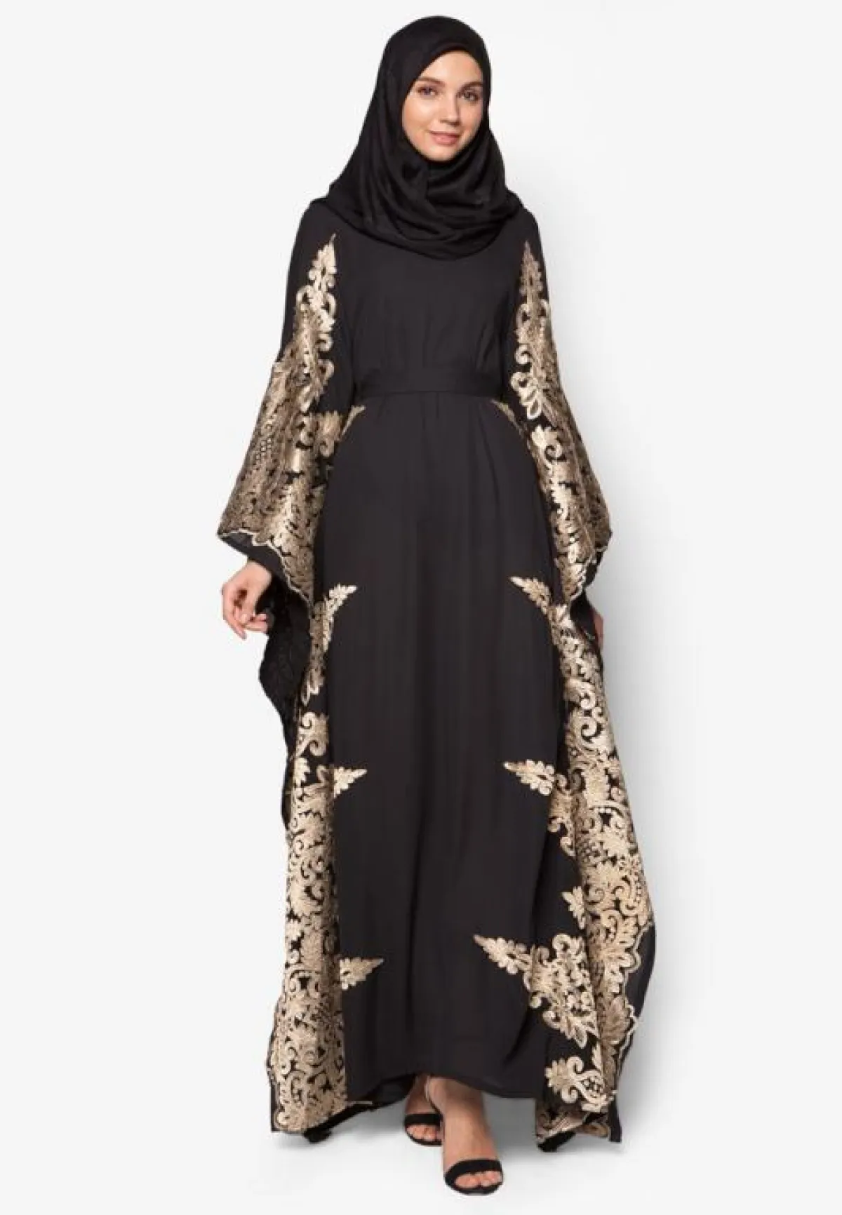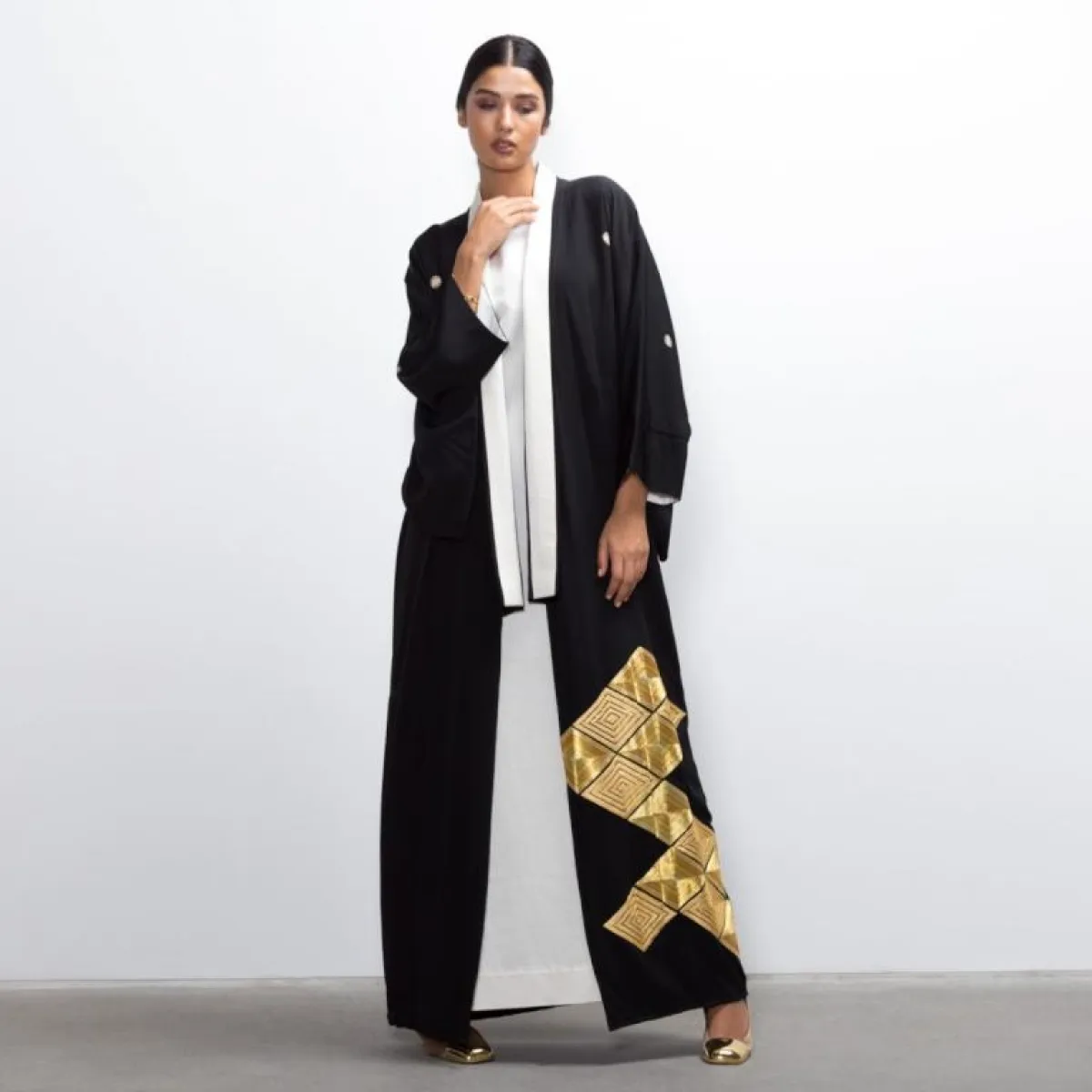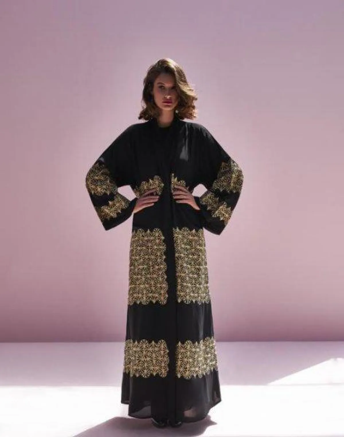 عباية باللونين الأسود والذهبي من ABAYA BUTH