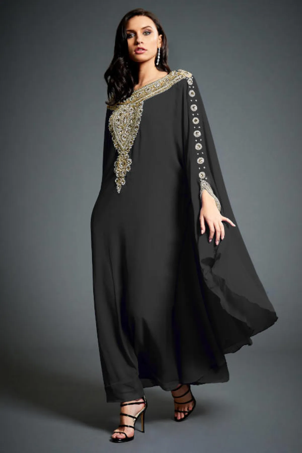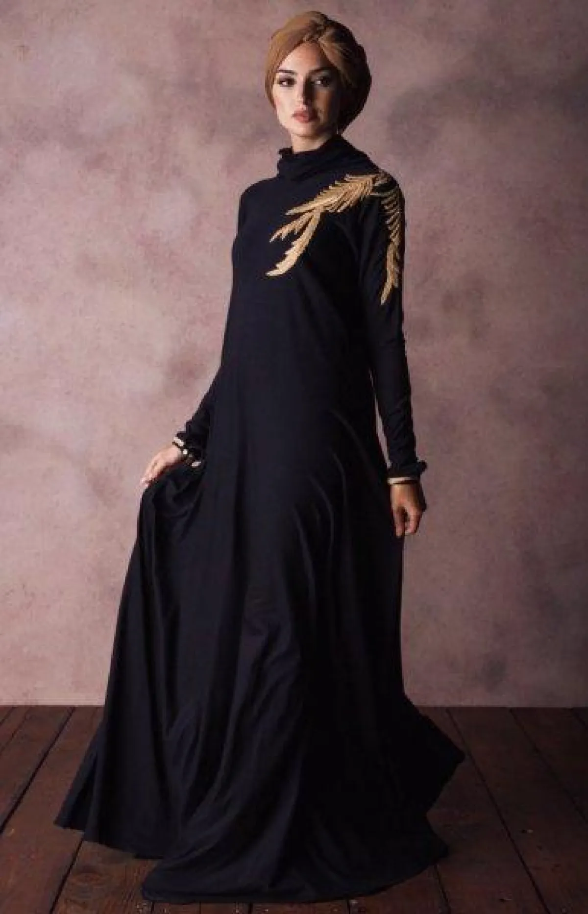 جلابية فاخرة باللونين الأسود والذهبي من Amina