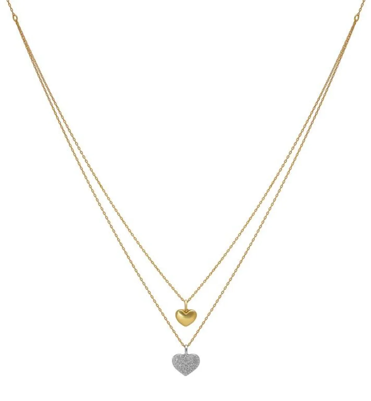 "القلبان" تمثل الاندماج بين شخصين مختلفين، ولكنهما واقعين في الحب. قلادة مكونة من سلسلتين تحملان قلبان، القلب الأول مرصع بالماس والثاني مصنوع من الذهب.
