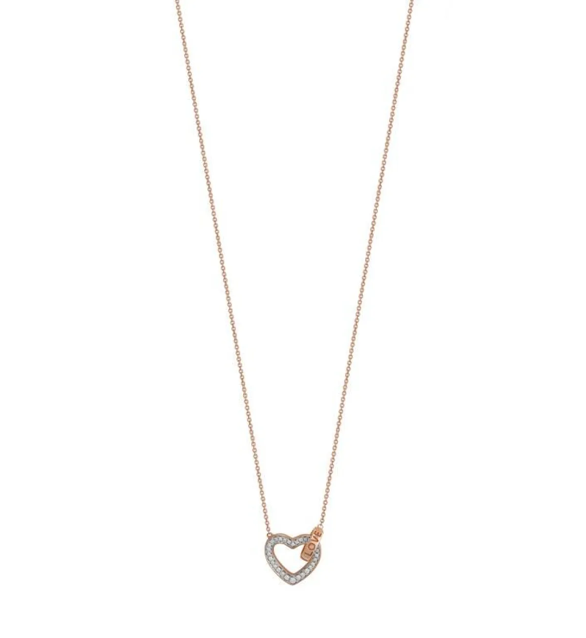 "مفتاح قلبي" قلادة وسوار تمثل الوعد الأبدي. مرصعة بماسات على شكل قلب يحيط بها الذهب الأصفر أو الوردي. محفور عليها كلمة "الحب".