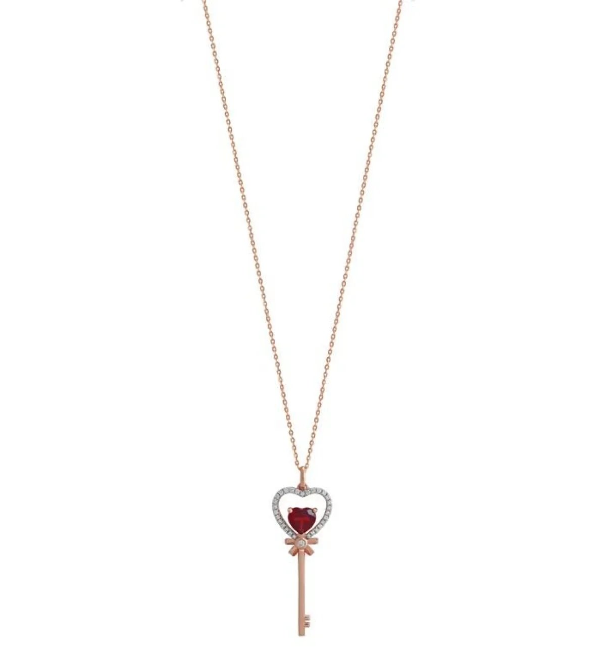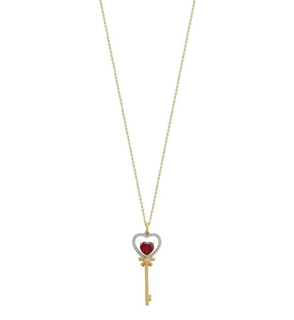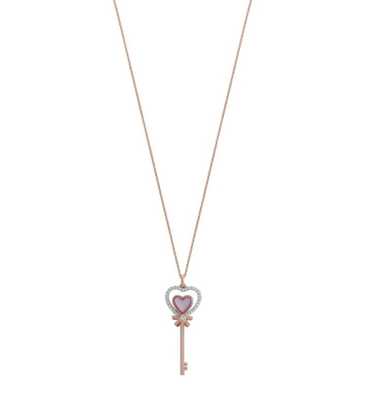 "مفتاح قلبي" ترمز هذه القلادة للعلاقة الجديدة التي يملؤها الأمل للرحلة القادمة. قطعة صممت بعناية على شكل مفتاح مزين بالعقيق أو اللؤلؤ محاط بالماسات بشكل مميز وفريد.