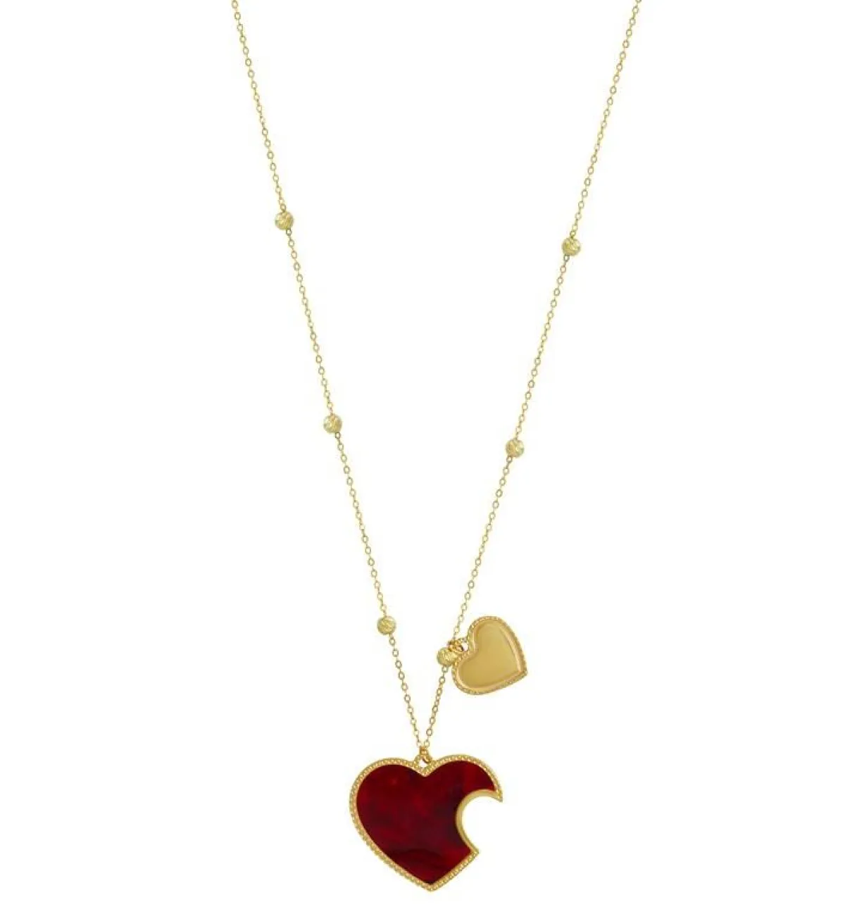 "القلب المطلق" مصنوع من الذهب الأصفر والعقيق ليكرس الحب الأبدي. صممت هذه القلادة لتعكس الأناقة ولترمز لكل انجاز مهم في هذه الرحلة الأبدية.