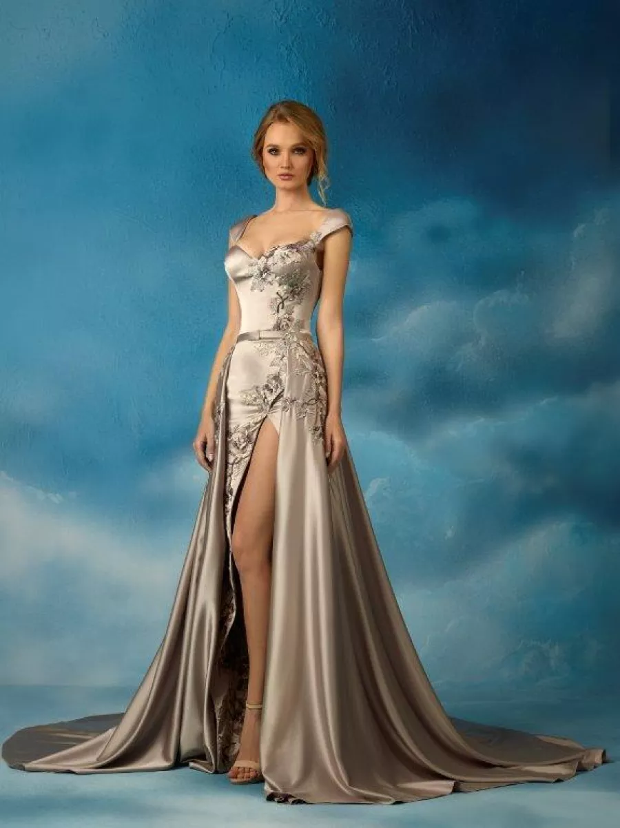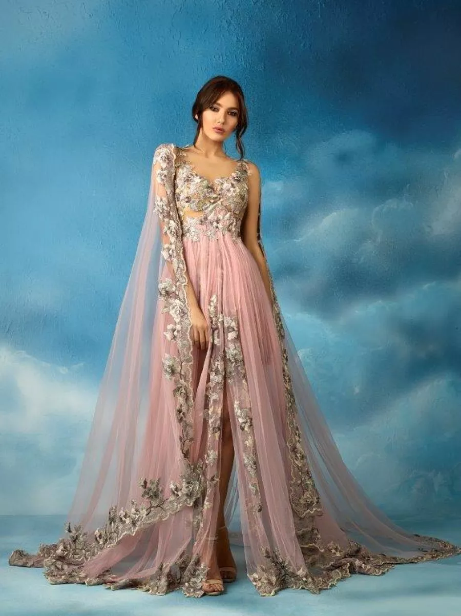 *مما استوحيت تصاميم الفساتين، علماً أن العديد منها جاء خارجاً عن المألوف؟