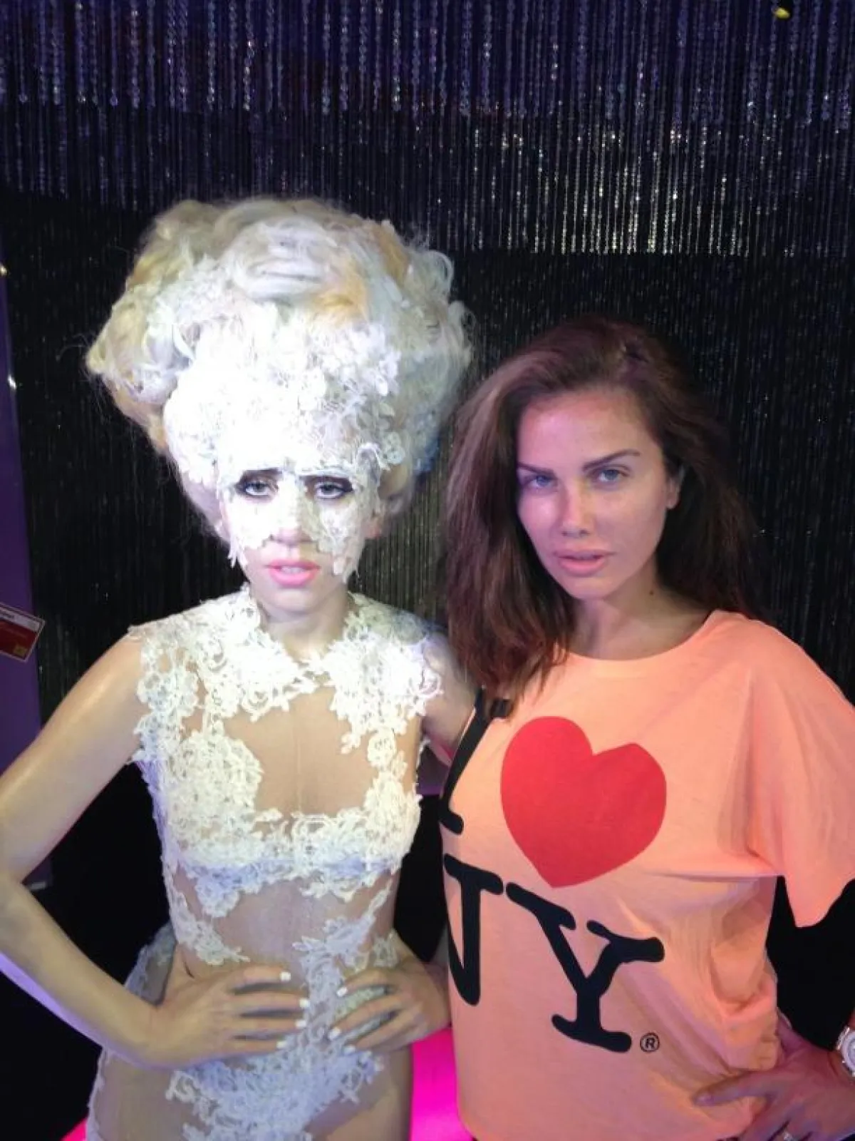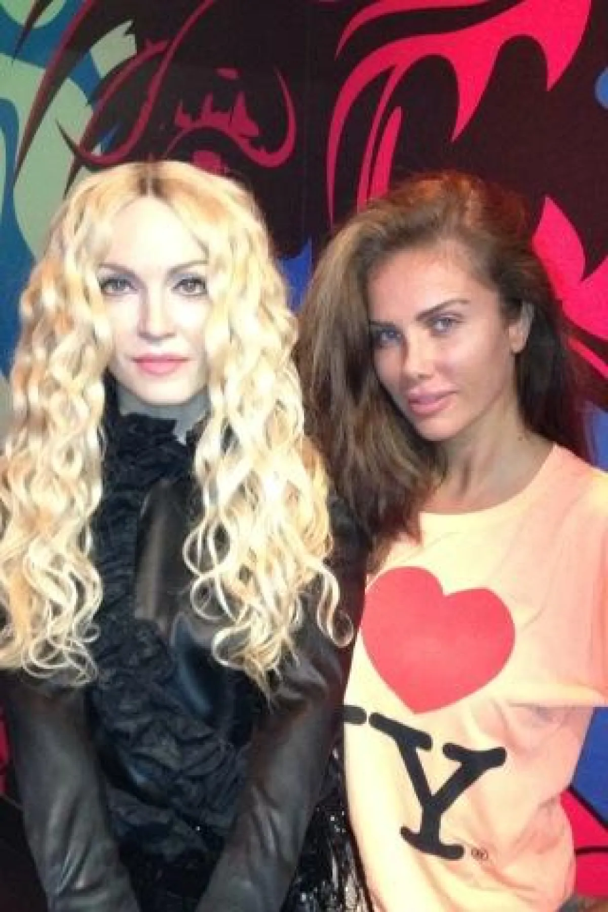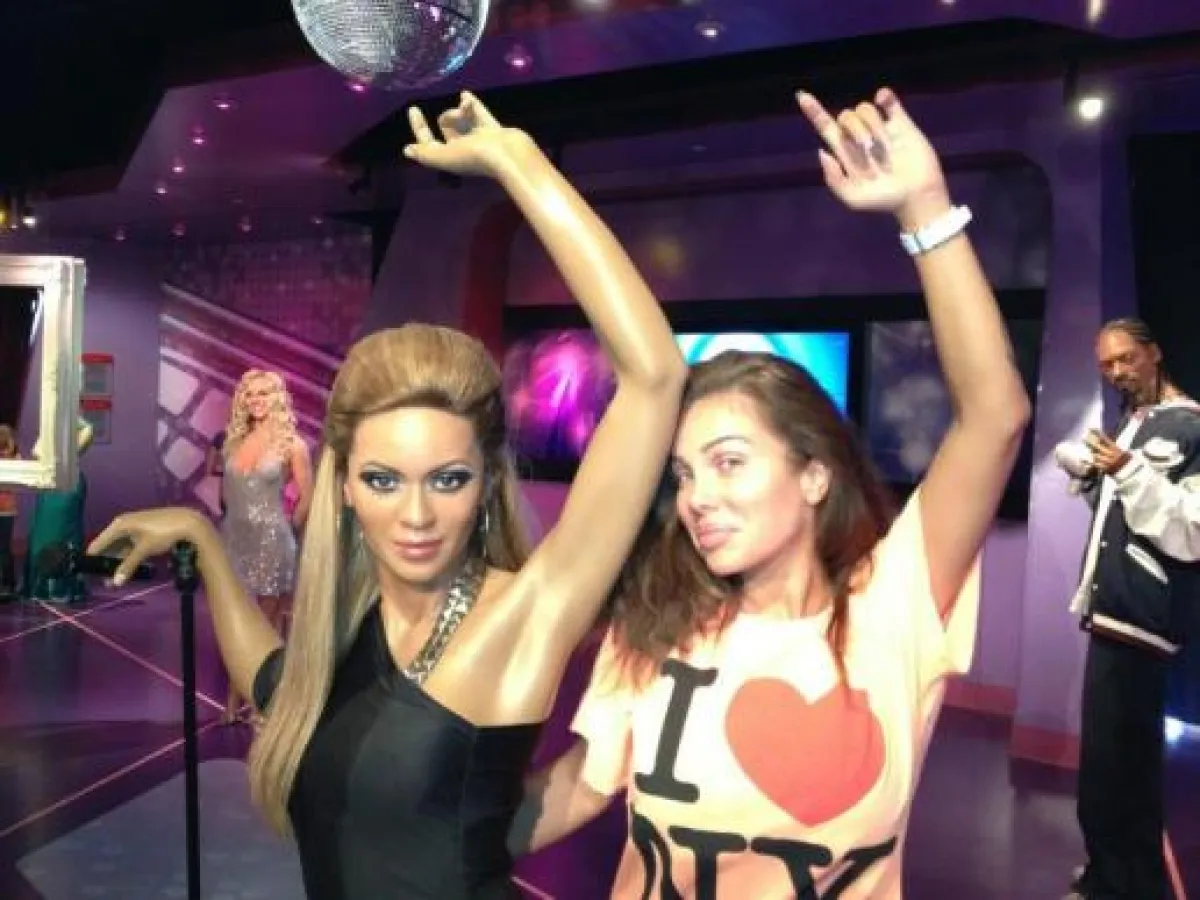 4-تلتقط الصور مع تمثال الشمع للمغنية بيونسيه.