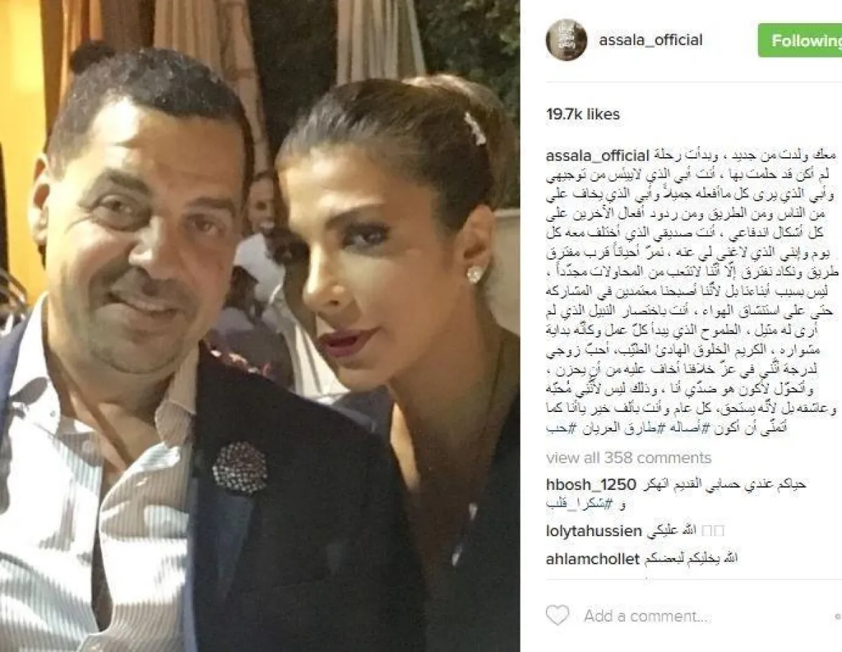 المطربة السورية أصالة عاشقة دوماً لزوجها المخرج طارق العريان، ولا تحتاج لمناسبة خاصة لإظهار هذا الحب، ولكنها تباغت الجميع أحياناً برسائل مطولة إلى زوجها أقرب إلى تجديد عهد المحبة، عبر حسابها على موقع «إنستغرام»، وهو ما أكدته في رسالتها الأخيرة لزوجها بمناسبة عيد زواجهما الحادي عشر بقولها: «يا عمري ويا أماني ويا سندي.. يا أبي وابني وأخي،