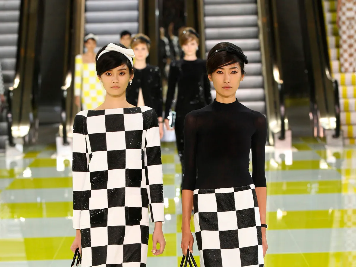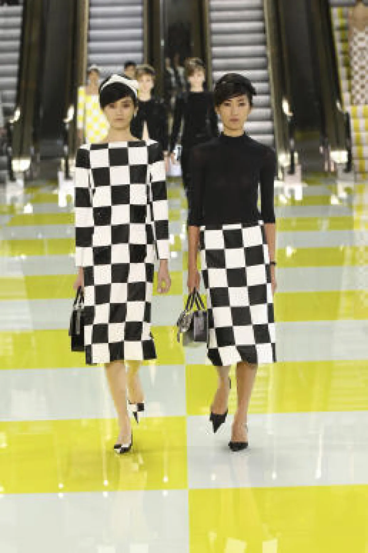 وفي هذا الموسم، تكاثرت النقشات المستوحاة من لعبة الشطرنج على منصّات عرض الأزياء لموضة ربيع وخريف 2013. ولاحظنا حرفيّة ذلك، خلال عرض Louis Vuitton، عندما نزلت العارضات على الأدراج، قبل اعتلاء المنصّة المزيّنة بمكعّبات الشّطرنج باللون الأصفر المائل إلى الأخضر.