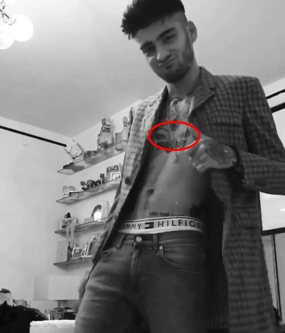 وكان اللافت أنّ إحدى الصور أظهرت وشمًا جديدًا على صدر مالك على شكل عينين، هما على الأرجح عينا حبيبته جيجي، وذلك نسبة للشبه الكبير الملحوظ.