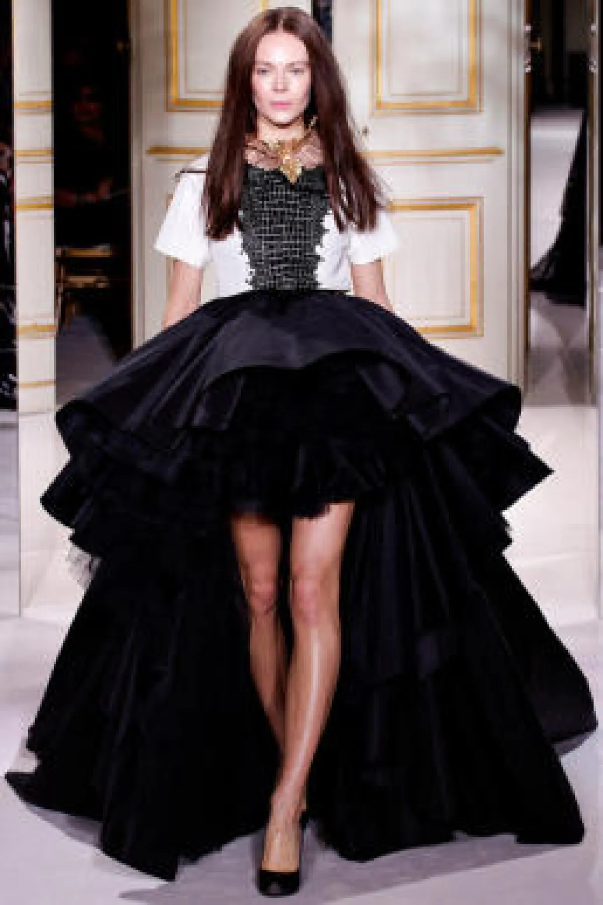 تميّزت فساتين السهرة التي قدمتها دور الأزياء العالمية بقصّة مميّزة قصيرة من الأمام وطويلة من الخلف. في عرض "ديور" Dior كانت الفساتين قصيرة بحيث تظهر الأقدام فقط، أما في عرض"غيامباتيستا فالي" فقد كانت أقصر من ذلك.