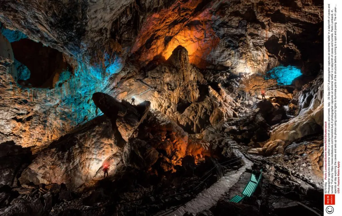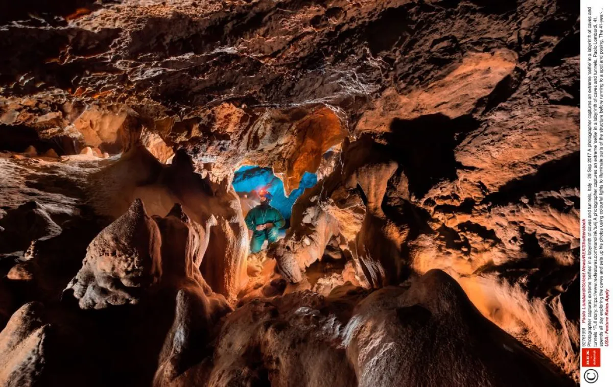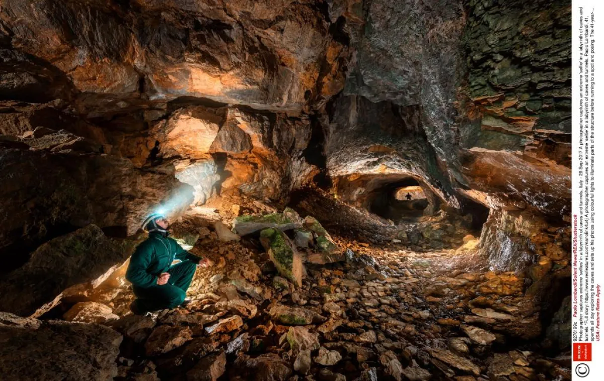 أمضى المغامر باولو لومباردي، 41 عاماً، من موندوفي، في كونيو، إيطاليا، يومه في استكشاف في متاهة من الكهوف والأنفاق الإيطالية، والتقاط صور باستخدام إضاءة ملونة لتسليط الضوء على أجزاء من المكان قبل أن يركض إليه ليكون في الصورة. وكان على لومباردي أن يحمل معدات التصوير الفوتوغرافي الثقيلة في الكهوف، وكلها في منطقة بيدمونت، بالقرب من كونيو، من أجل التقاط الصور المميزة، التي وصفها بأنها أربعة كهوف كبيرة، ثلاثة منها طبيعية، وواحد اصطناعي أنشئ كنفق لنابليون بين إيطاليا وفرنسا.