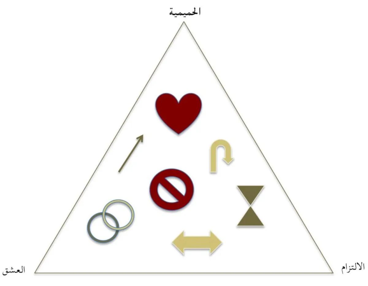 فالشكل المثالي للعلاقة بين الزوجين ينبغي أن يتشكل من هذه المكونات الثلاث سوياً وبالتساوي، إلا أنّه من الصعب حدوث ذلك، وفي حال خلل أحد هذه العناصر تنتج أنواع أخرى للعلاقة لا تُعبر عن الحب الحقيقي وهو ما أطلق عليه «الحب الفارغ»، الذي يعاني من الركود وحالة «الميل» التي تفتقد للالتزام، كذلك حالات «الهيام» التي تخلو من مكونات الحميمية والالتزام.