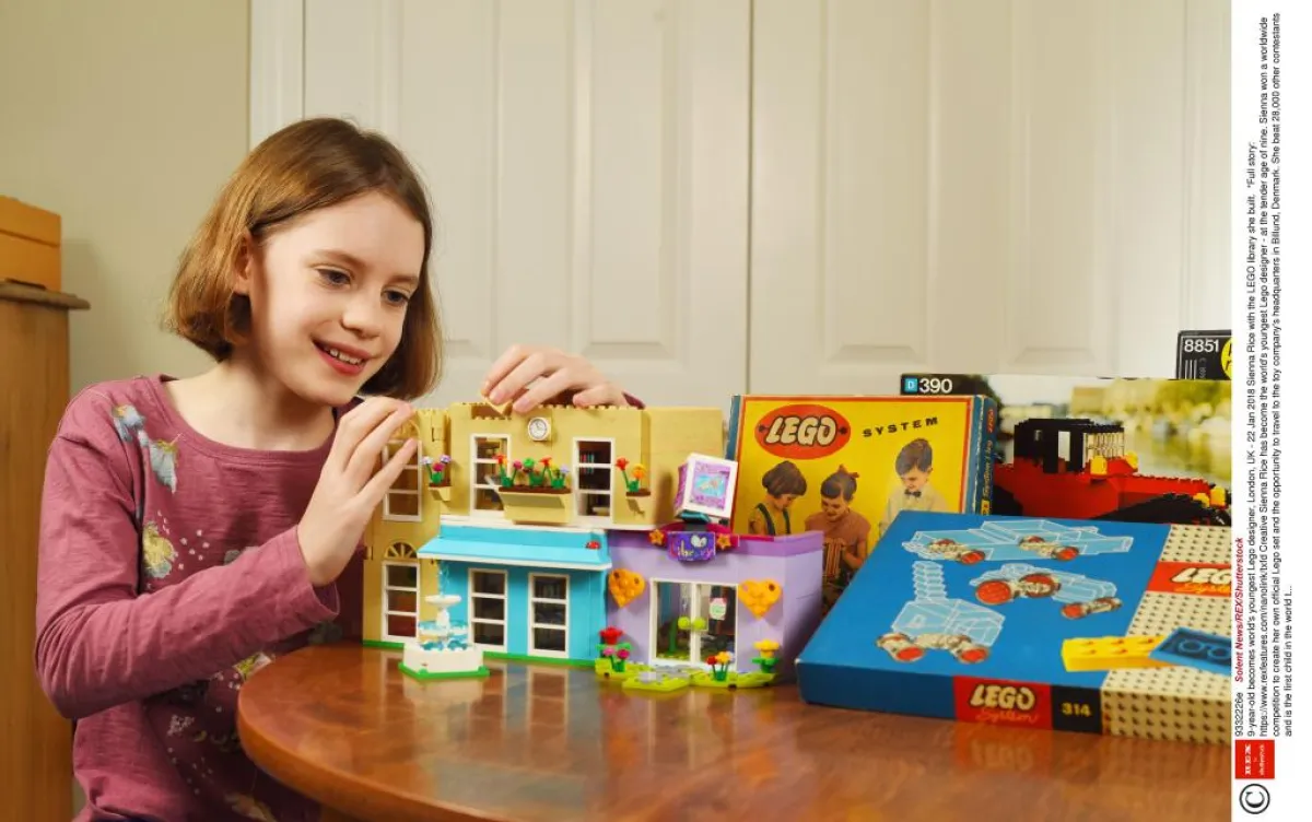 أصبحت الطفلة المبدعة البريطانية سيينا رايس، أصغر مصممة ليغو في العالم، في سن مبكرة هي تسعة أعوام، إذ فازت سيينا بمنافسة عالمية لإنشاء مجموعة ليغو رسمية خاصة بها، وفرصة السفر إلى مقر شركة الألعاب في بيلوند، الدانمارك، متفوقة بذلك على 28،000 من المتسابقين الآخرين، وهي أول طفلة في العالم يكون لها مجموعة ليغو خاصة مصنعة، هي عبارة عن ملعب مع دمى صغيرة، أطلقت في جميع أنحاء العالم.