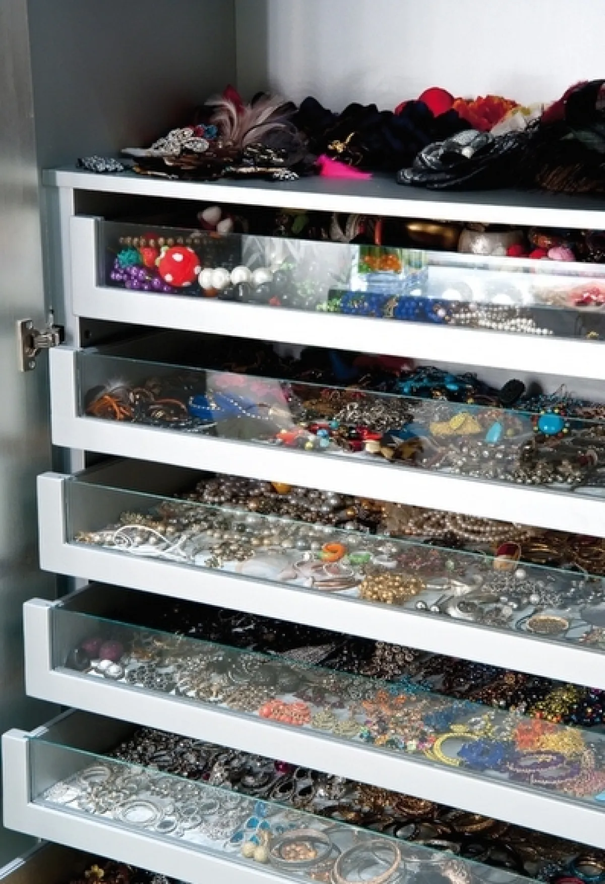 أمّا غرفة نومها فمفتوحة على غرفة المكياج، وتتفرّد بورق جدران باستيليّ وخزانة ورفوف زجاجيّة خاصّة، صمّمت خصيصاً لمجوهراتها و"اكسسواراتها".
