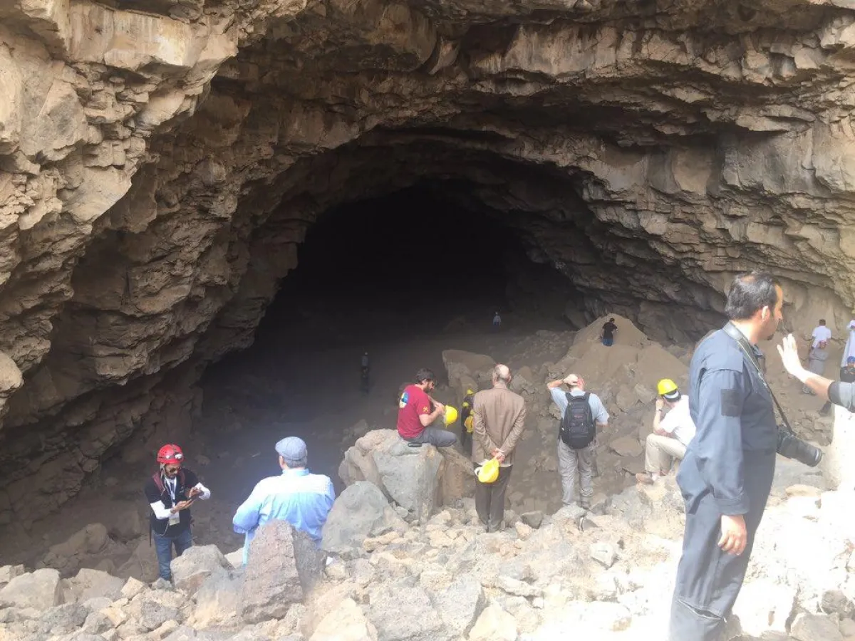 وأضاف أبا الخيل، أن الوفد زار كذلك كهف أم جرسان في حرة خيبر، الذي يعد أحد أكبر الكهوف في الوطن العربي، حيث يبلغ طوله 1500 متر، وأقصى ارتفاع فيه 12 متراً، وعرضه 45 متراً، ويصل عمره إلى ثلاثة ملايين سنة، ومطوَّق بجدار أعلى الكهف لحمايته من تساقط الأتربة، بالإضافة إلى وجود سلالم انسيابية لتسهيل عملية نزول الزائرين والمهتمين، كما يحتوي داخله على موجودات أثرية من جماجم بشرية، وعظام حيوانات مفترسة، وكتابات يعود تاريخها إلى آلاف السنين، مبيناً أن الكهف مرشَّح لأن يكون مزاراً سياحياً رائداً في المستقبل.