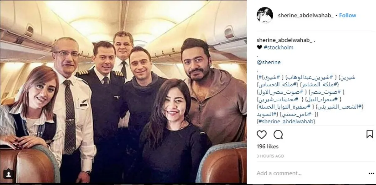 حسام حبيب غاب عن كل صور الحفل الأول لشيرين عبد الوهاب مع تامر حسني في السويد، كما لم يظهر عبر مقطع الفيديو الذي ضم الوفد المرافق للنجمين، ولكن حساب خاص يتبع شيرين عبد الوهاب قام صباح اليوم الأحد، بنشر صورة خاصة من داخل الطائرة المتجهة الى مدينة استوكهولم وكانت المفاجأة في وجود حبيب، علماً أنه نفى سابقاً تعيينه مستشار فنياً لشيرين عبد الوهاب.