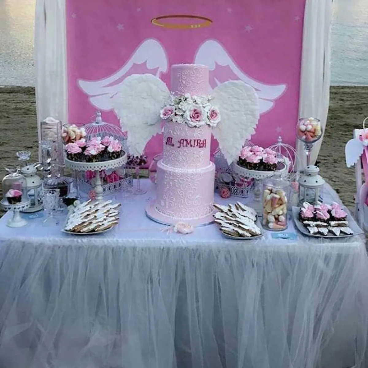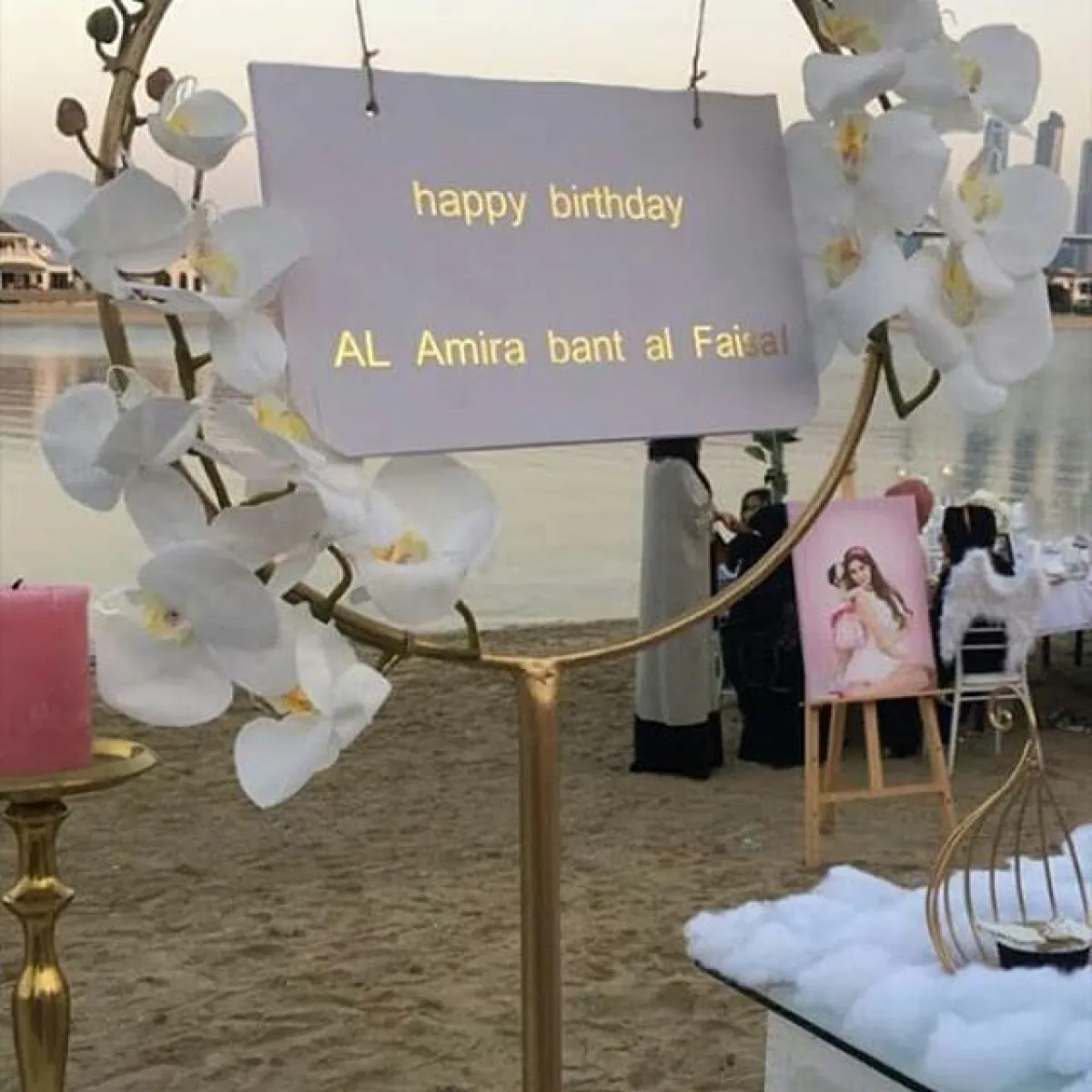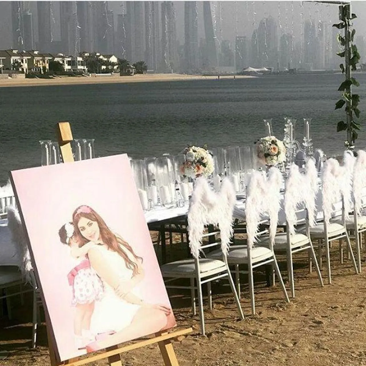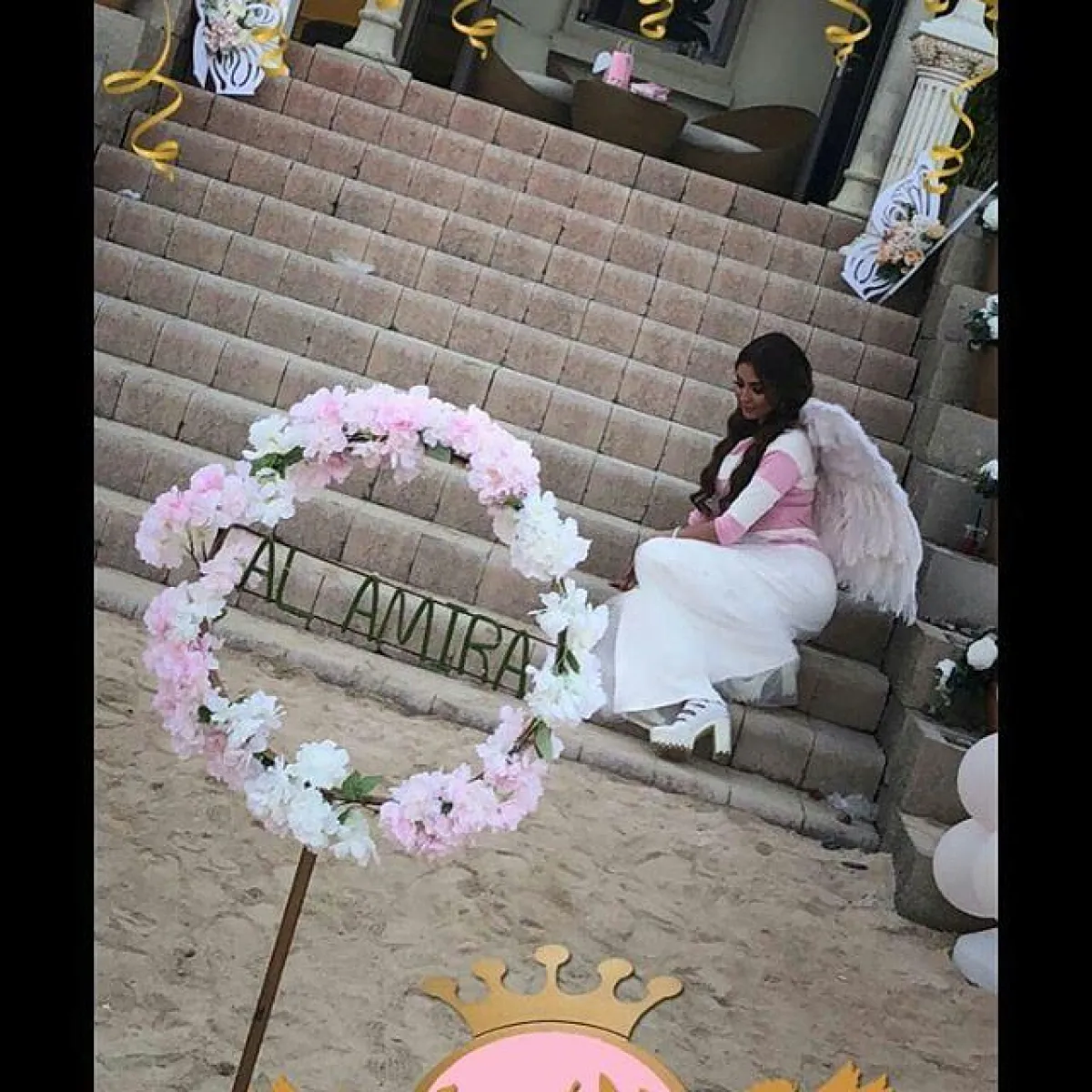 وأقامت مريم حسين الحفل، في مكان مفتوح على شاطئ البحر، وزينته بديكورات وبالونات باللونين الأبيض والزهري.