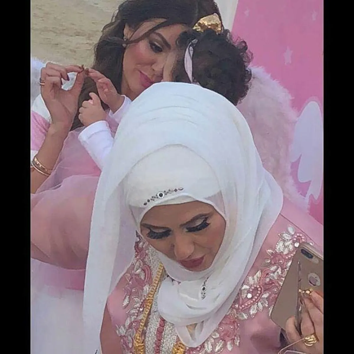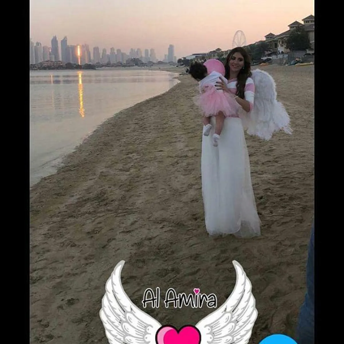 واختارت مريم حسين لابنتها الاميرة زياً مصمماً على شكل ملاك، كما اختارت لنفسها فستاناً شبيهاً به.