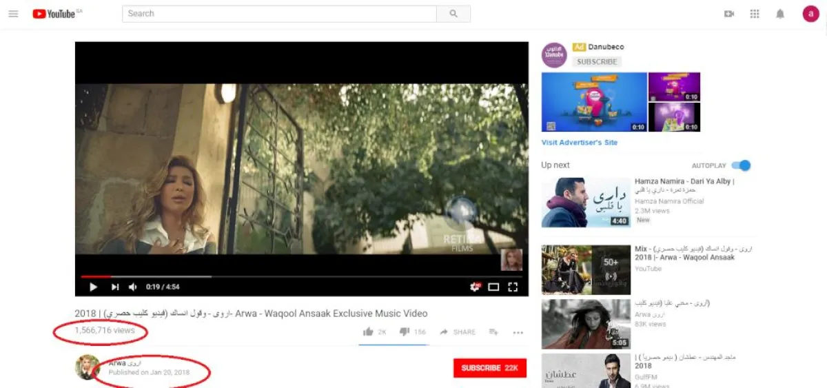 بعد 20 يوماً من فقط من طرح الفنانة اليمنية أروى "فيديو كليب" لأغنية "وأقول أنساك" على موقع يوتيوب، تخطى عدد مشاهداتها المليون ونصف المليون.